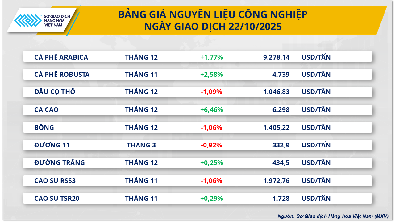Khép lại phiên giao dịch ngày hôm qua, thị trường nguyên liệu công nghiệp chứng kiến lực mua mạnh mẽ trên hầu hết các mặt hàng chủ chốt. Đáng chú ý, giá ca-cao trong phiên hôm qua đã tăng gần 6,5% lên mức 6.298 USD/tấn.