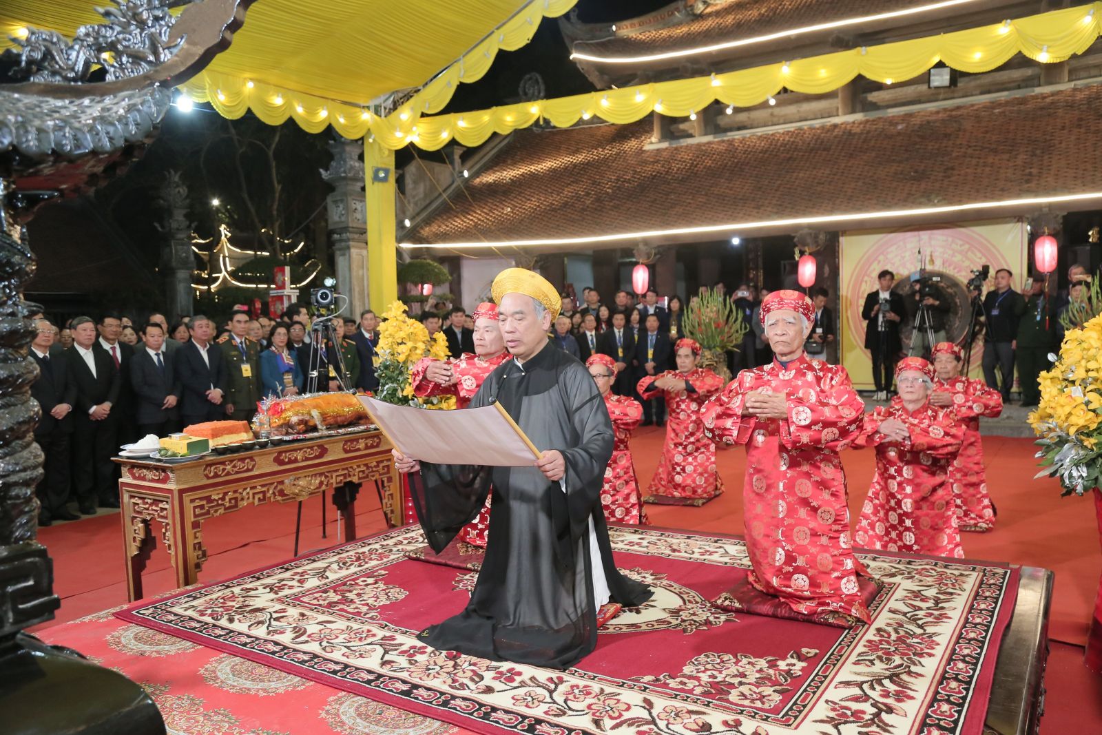 Trước lễ khai mạc, tại sân tòa trung tế đền Vua, các đồng chí lãnh đạo Trung ương và tỉnh Thái Bình cùng các đại biểu đã thực hành bái yết các vua Trần.