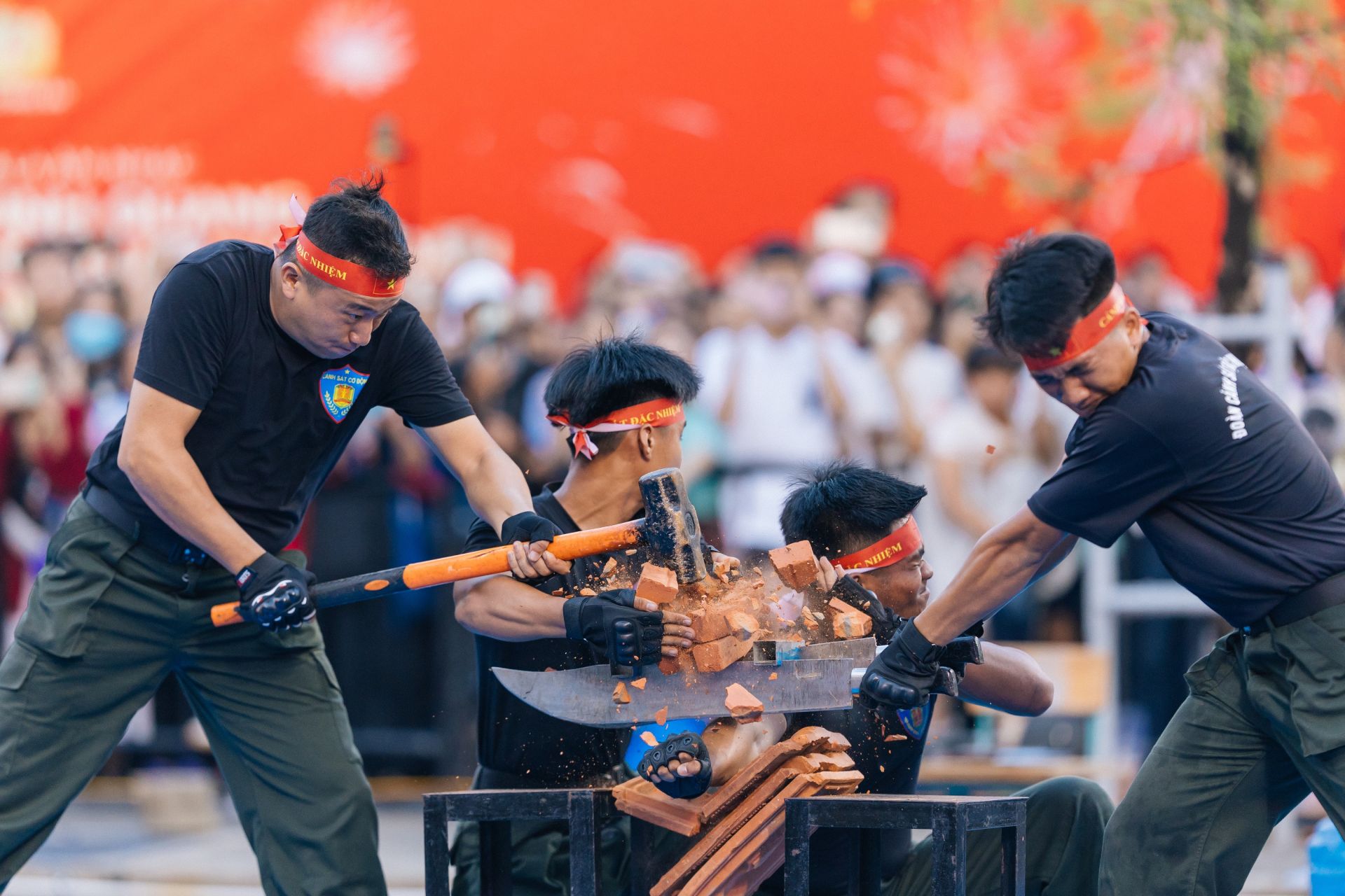 Đặc biệt, phần biểu diễn khí công thu hút mọi ánh nhìn với những tiết mục “thách thức giới hạn con người”: dùng cổ uốn cong thanh sắt, nằm trên bàn chông, dùng tay chặt gạch hay đập vỡ bê tông bằng đầu… Tất cả đều thể hiện nội lực phi thường, ý chí sắt đá và tinh thần vượt lên chính mình của các chiến sĩ Công an nhân dân.