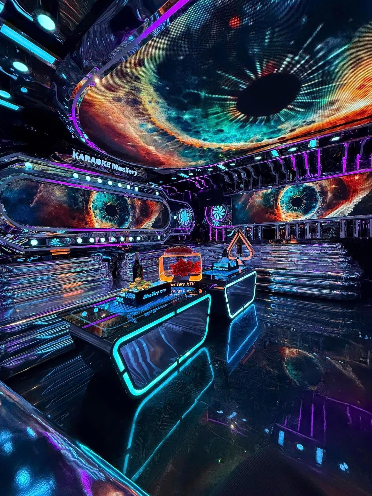 Hệ thống karaoke Mastery, được đầu tư về âm thanh, ánh sáng và cách âm, đáp ứng nhu cầu giải trí, gặp gỡ, tiếp khách.