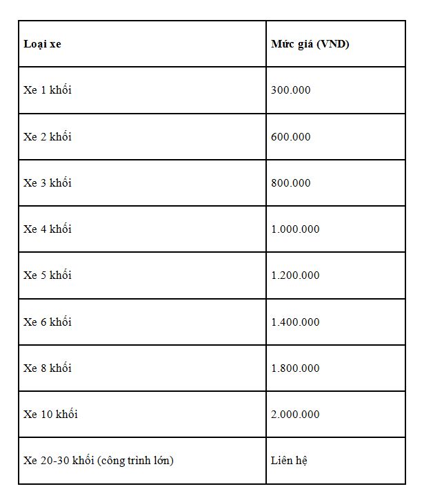 Giá dịch vụ hút hầm cầu tại Cần Thơ năm 2025 của Môi Trường Minh Tâm cạnh tranh, từ 300.000 đồng/m³, bao gồm lao động, nhiên liệu và vật liệu cơ bản (chưa bao gồm VAT). Khách hàng tại Cần Thơ tham khảo bảng giá chi tiết dưới đây: