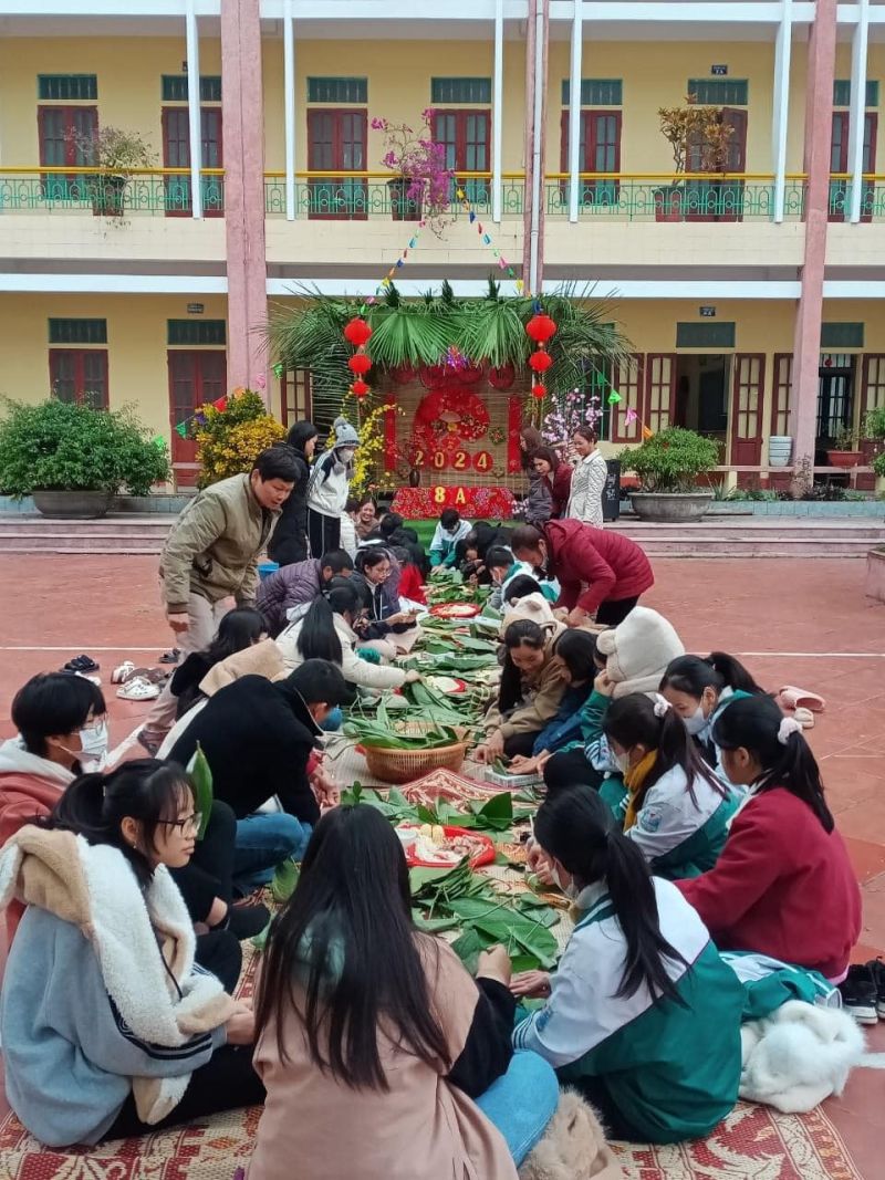 Hoạt động trải nghiệm với chủ đề “Chào xuân Giáp Thìn” của thầy và trò trường THCS Thịnh Long. (Ảnh: Trần Ngọc Hoàn)