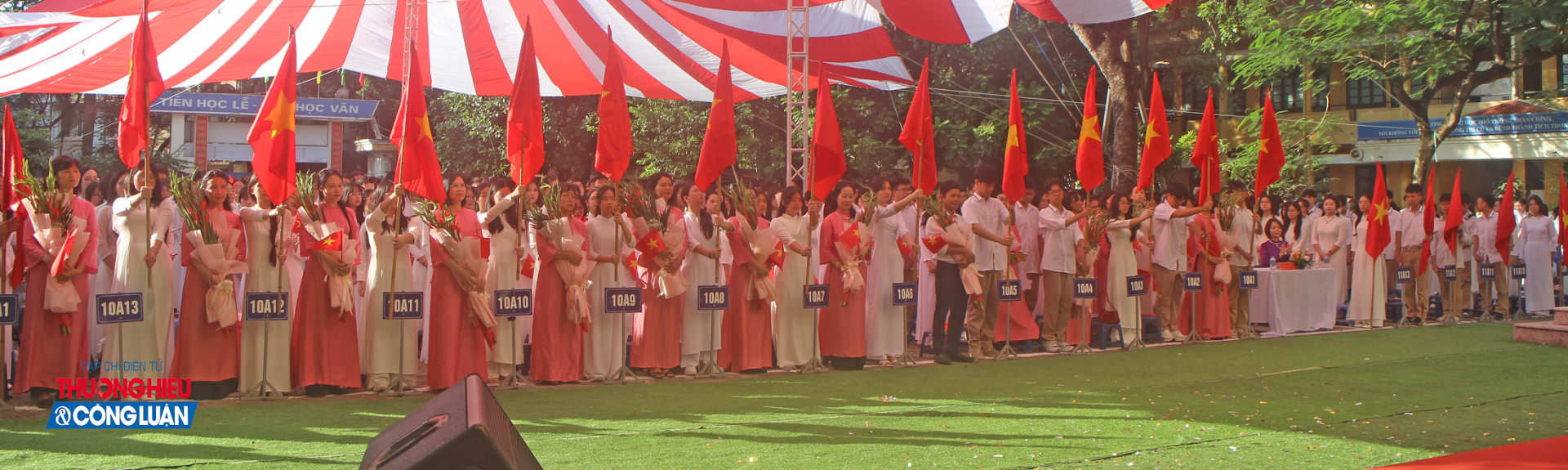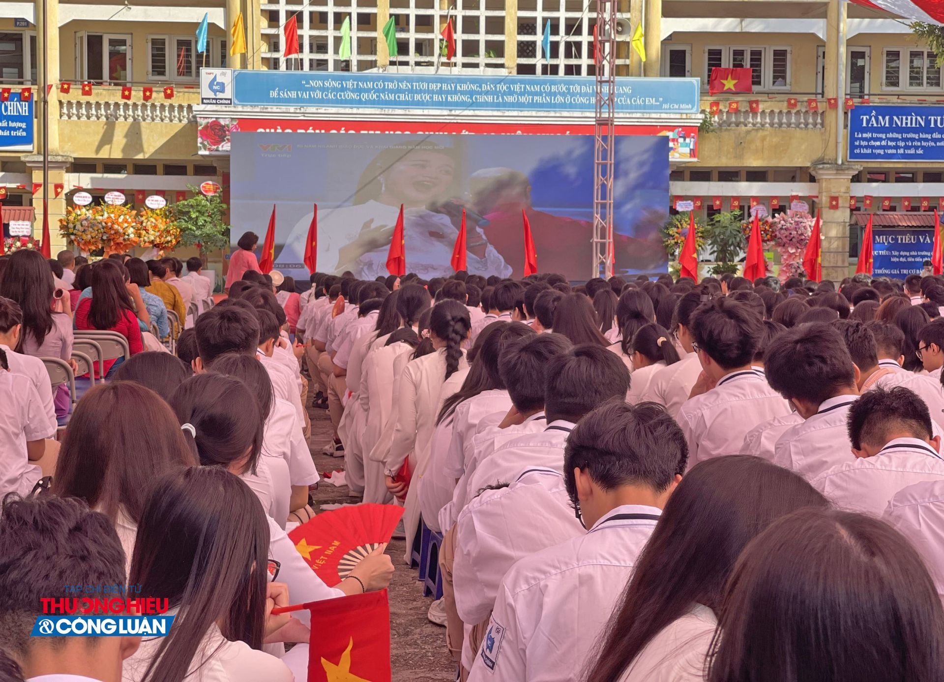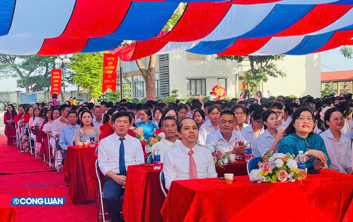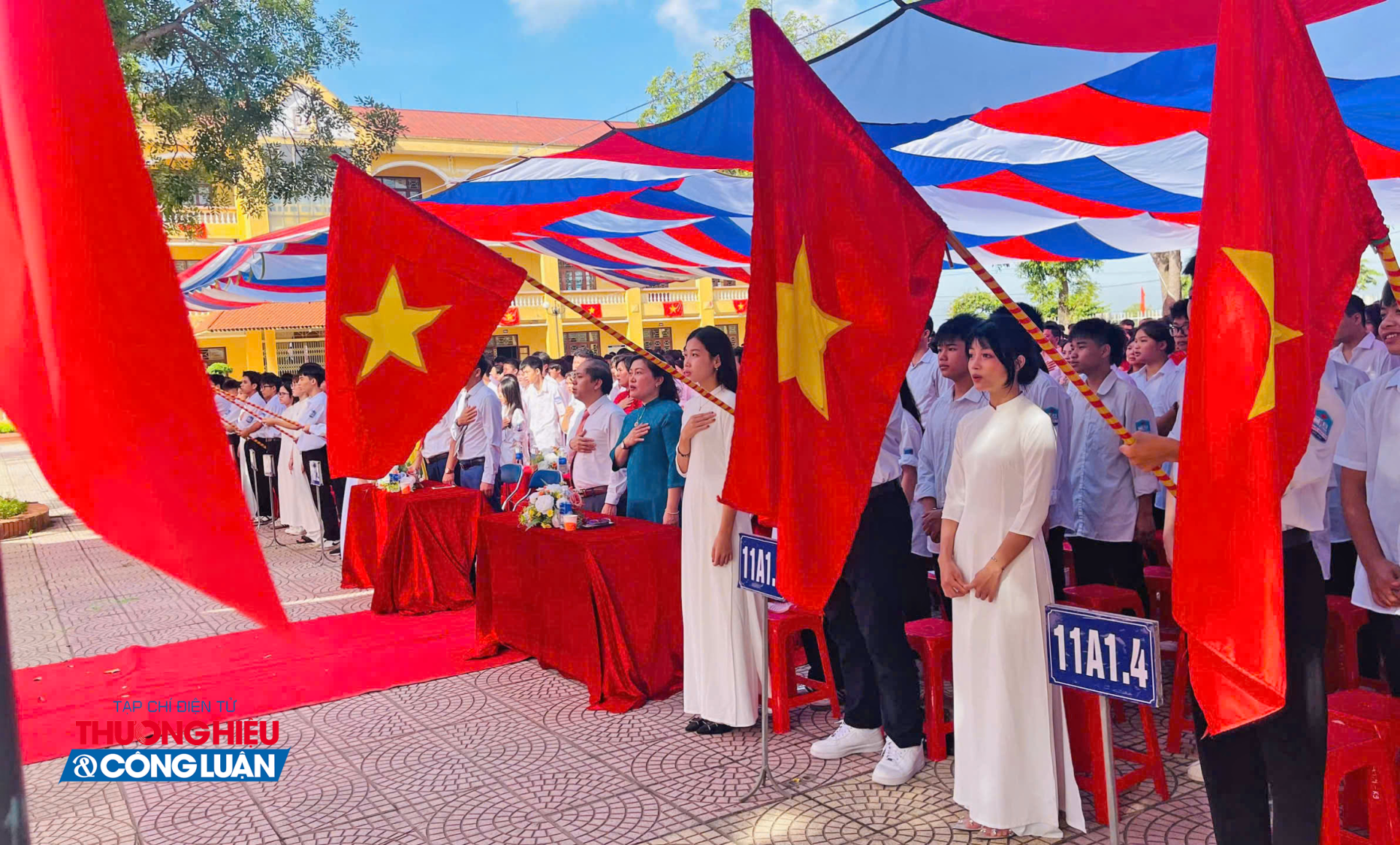 Tại Trường THPT Ngô Gia Tự (tỉnh Bắc Ninh), hơn 1.800 học sinh các khối tham gia lễ khai giảng, sân trường rực rỡ cờ hoa và đầy ắp tiếng trống chào năm học mới.