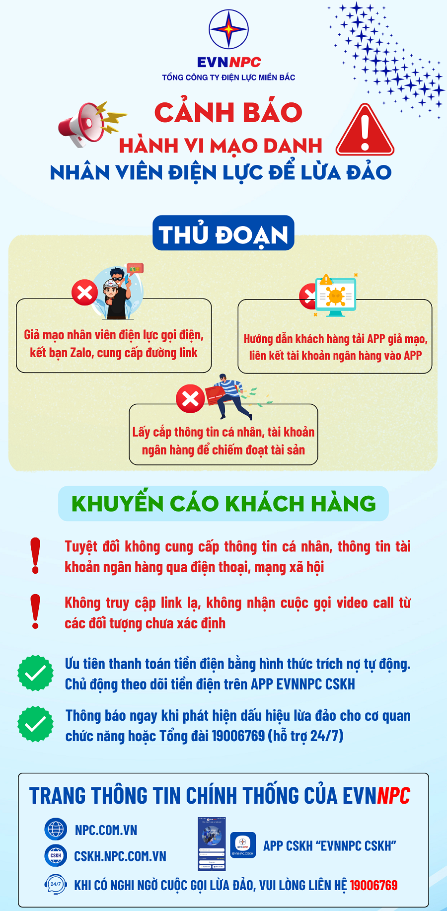 Một lần nữa, Tổng công ty Điện lực miền Bắc kính đề nghị quý khách hàng nâng cao tinh thần cảnh giác:
