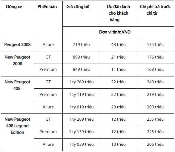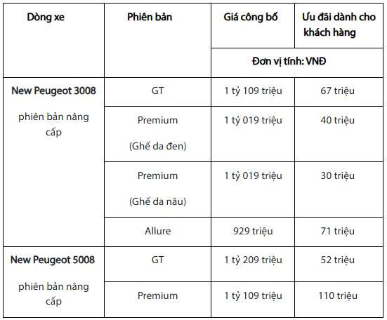 1. Giá công bố và chương trình ưu đãi cho New Peugeot 3008 và New Peugeot 5008 phiên bản nâng cấp:
