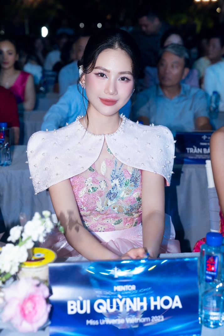 Lần đầu đảm nhận vị trí mentor tại Miss University Vietnam, Hoa hậu Bùi Quỳnh Hoa – Miss Universe Vietnam 2023 – đem đến sự hào hứng bởi hình ảnh hiện đại, sắc sảo và giàu khát vọng hội nhập quốc tế. Không phải là “tay mơ”, Quỳnh Hoa đã có kinh nghiệm huấn luyện tại Miss International Queen Vietnam 2023 và 2025, cho thấy khả năng tư duy chiến lược và rèn luyện kỷ luật của cô.
