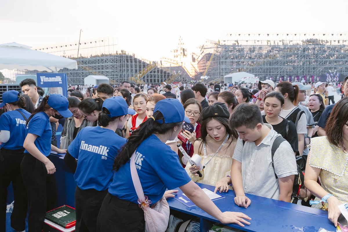Ngay từ đầu giờ chiều, khi nắng vẫn còn gay gắt, gian hàng Vinamilk đã nhanh chóng trở thành điểm dừng chân đầu tiên của nhiều khách tham dự. Với không gian được thiết kế bắt mắt, thân thiện và tràn ngập sắc xanh rực rỡ, Vinamilk mang đến cảm giác dễ chịu và gần gũi, sẵn sàng cho hành trình kết nối hàng chục ngàn trái tim yêu âm nhạc và lối sống lành mạnh.