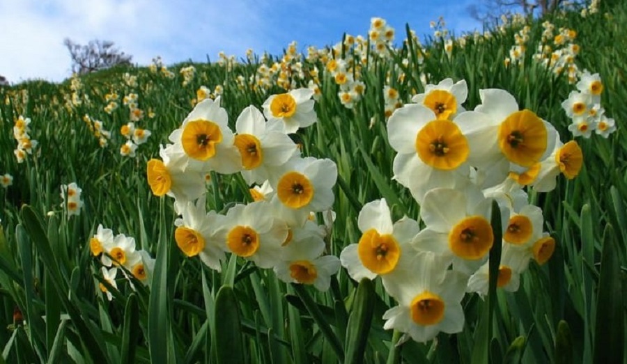 Hoa thủy tiên nổi bật với cành cao thanh mảnh, lá xanh bóng, hoa đa sắc màu và hương thơm dịu nhẹ, tượng trưng cho năng lượng tươi mới, sức sống và may mắn – thường gọi là "chén vàng đĩa bạc". Toàn bộ cây đều có độc, đặc biệt củ chứa lycorine và oxalat cao, dễ nhầm với củ hành tây; lá mảnh mai lại giống lá hẹ.
