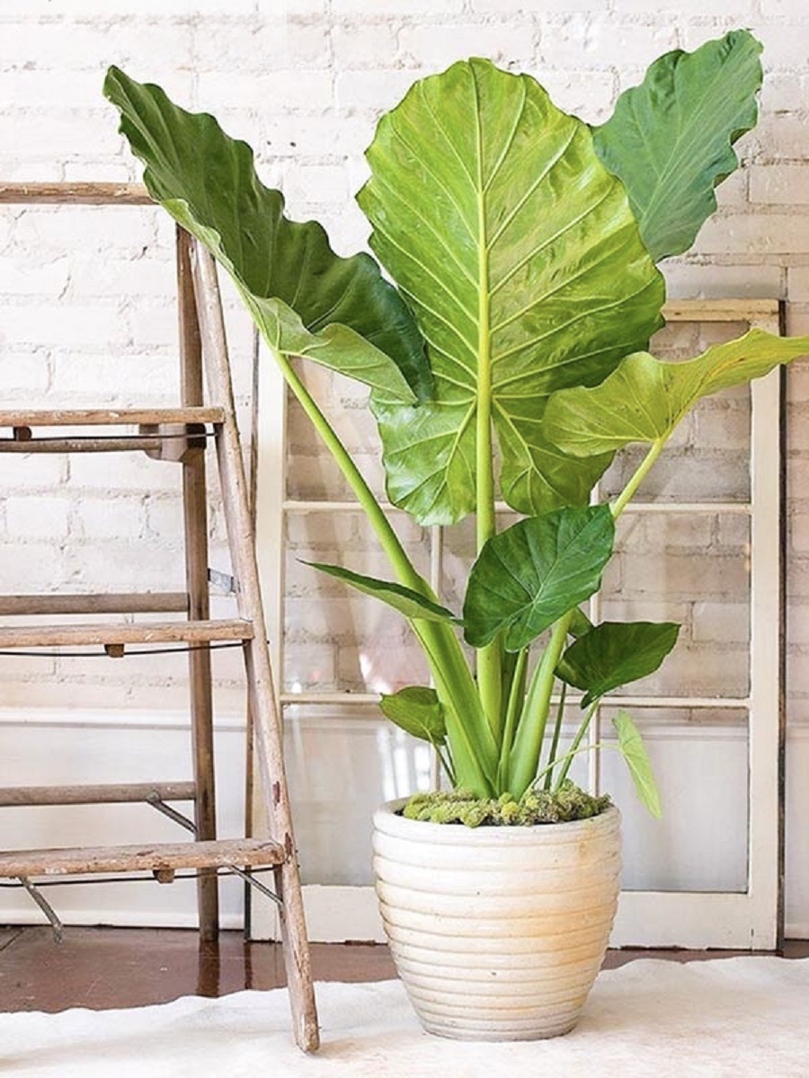 Cây tai voi (hay còn gọi là môn khổng lồ, Alocasia) sở hữu lá to bản, thân cao, mang lại sức sống mạnh mẽ cho không gian. Nhiều người coi đây là biểu tượng may mắn, tài lộc trong phong thủy, đồng thời giúp thanh lọc không khí. Tuy nhiên, nhựa cây chứa tinh thể calcium oxalate. Chỉ chạm vào đã gây đau rát, đỏ sưng da. Nếu trẻ nhỏ tiếp xúc hoặc nuốt phải, nguy cơ kích ứng nghiêm trọng rất cao. Loại cây này thường bị nhầm với các loài rau ăn được, dẫn đến nhiều trường hợp ngộ độc miệng và họng.