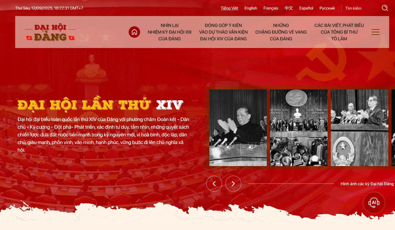 Ngày 12/9, Trang thông tin điện tử Đảng Cộng sản Việt Nam - Đại hội XIV chính thức ra mắt tại địa chỉ https://daihoidangtoanquoc.vn, cung cấp thông tin chính thống, đầy đủ và kịp thời các hoạt động tiến tới Đại hội đại biểu toàn quốc lần thứ XIV của Đảng Cộng sản Việt Nam.