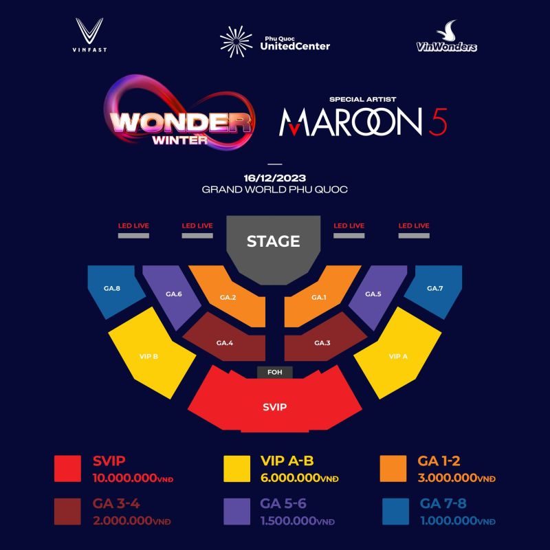 Từ cuối tháng 10, Phú Quốc đã nhanh chóng trở thành tâm điểm của cộng đồng mạng khi thông tin về siêu nhạc hội 8Wonder Winter Festival được hé lộ. Ngày 16/12 tới đây, Maroon 5 sẽ trình diễn giữa Quảng trường biển Grand World phía bắc đảo ngọc. 8Wonder đã mở bán vé chính thức với mức giá phù hợp với đa dạng nhu cầu, dao động từ 1 – 10 triệu đồng/người ở 6 hạng vé, tặng kèm trải nghiệm tham quan Nhà gấu Teddy Bear cho tất cả vé siêu nhạc hội.