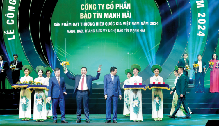 Trải qua vòng xét chọn kỹ lưỡng từ hơn 1.000 hồ sơ tham gia, đáp ứng hệ thống các tiêu chí khắt khe của Chương trình Vinh danh Thương hiệu quốc gia Việt Nam 2024, Công ty CP Bảo Tín Mạnh Hải vinh dự được Thủ tướng Chính phủ trao biểu trưng Thương hiệu quốc gia Việt Nam 2024 cho sản phẩm vàng, bạc, trang sức mỹ nghệ.