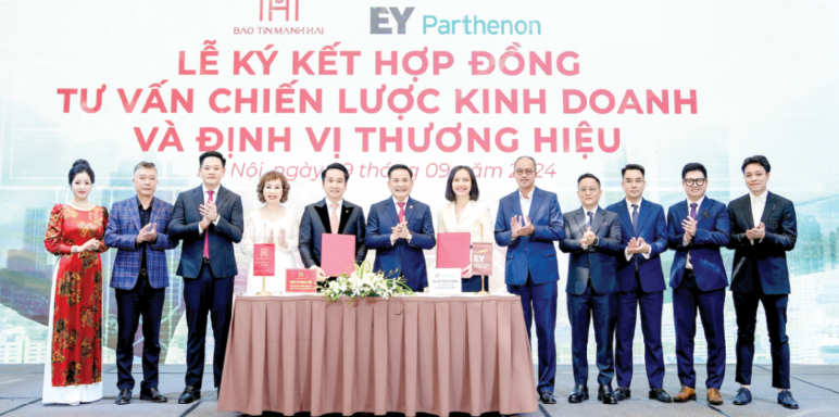 Chủ tịch HĐQT, Tổng giám đốc Công ty CP Bảo Tín Mạnh Hải, Vũ Hùng Sơn - cùng Phó tổng giám đốc EY-Parthenon Đào Thị Thiên Hương, đại diện ký kết hợp tác tư vấn chiến lược
