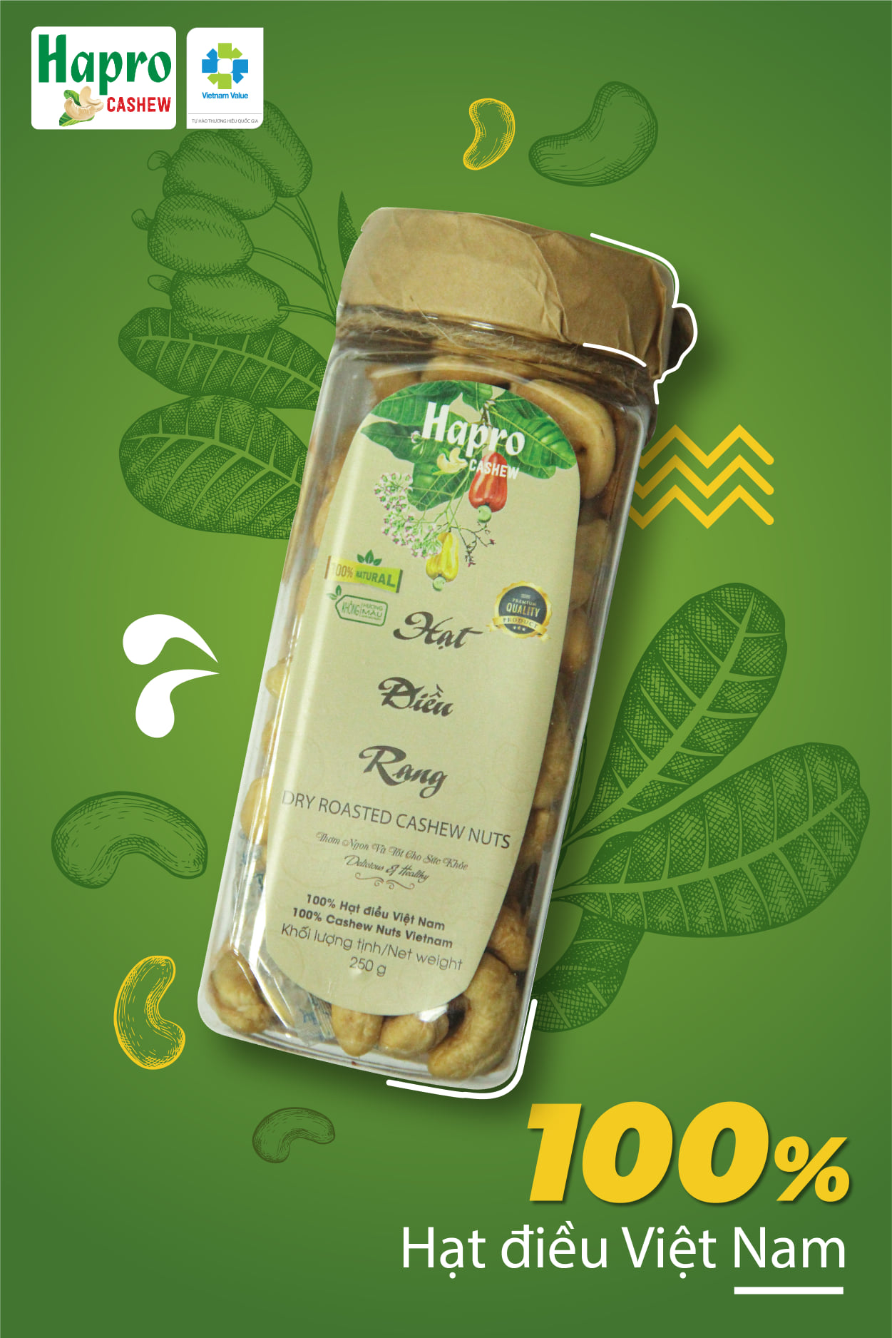 Hạt điều Hapro, đơn vị cam kết mang đến những sản phẩm thơm ngon, chất lượng, đáp ứng tiêu chuẩn quốc tế. Hapro luôn chú trọng đến chất lượng sản phẩm, đảm bảo hạt điều rang Hapro có hương vị thơm ngon, hấp dẫn, đáp ứng nhu cầu của thị trường. Hạt điều Hapro, bao gồm nhiều loại như hạt điều rang muối, hạt điều tẩm gia vị..., đáp ứng đa dạng nhu cầu của người tiêu dùng.