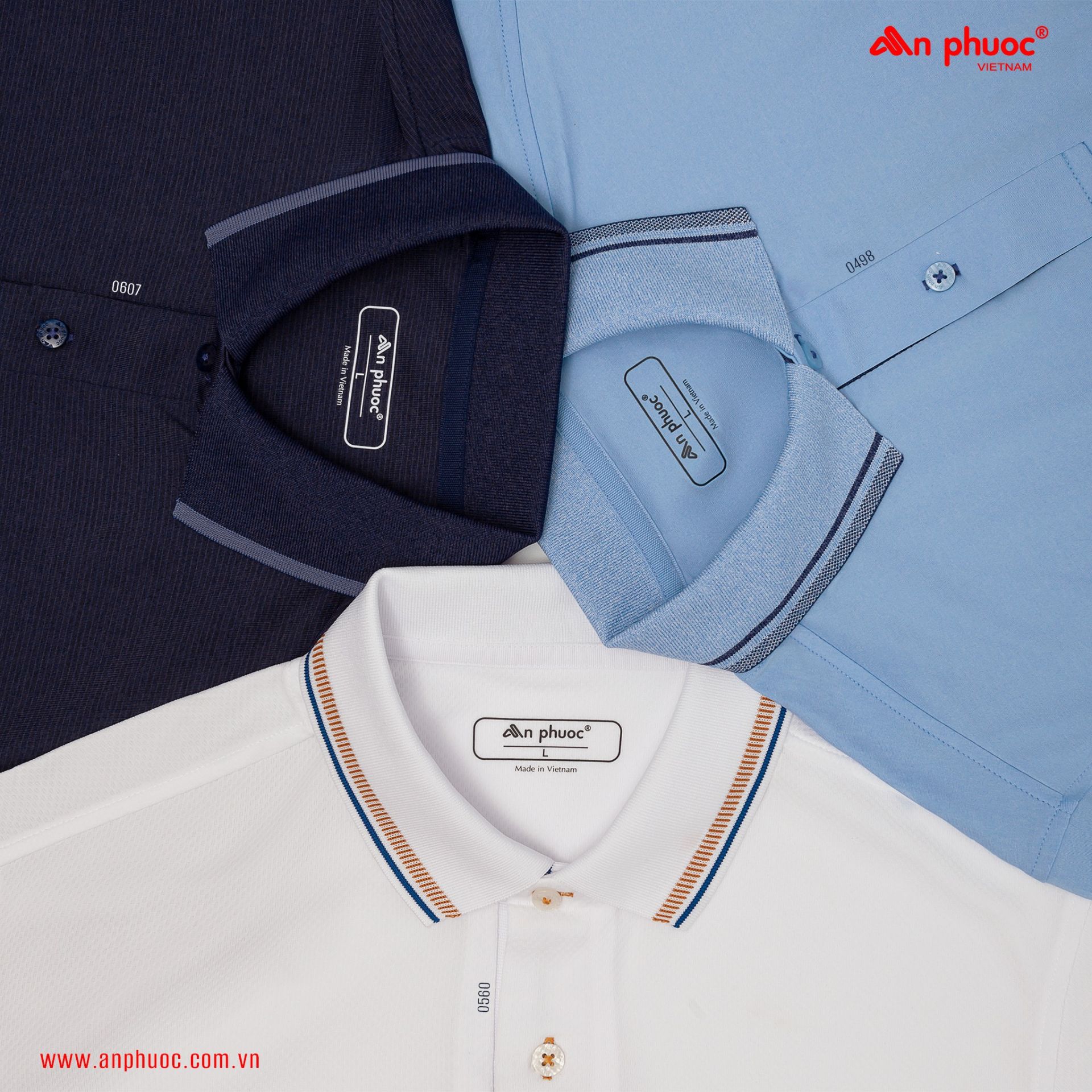 Áo thun nam An Phước: Đa dạng mẫu mã, có loại có cổ và loại không cổ với màu sắc, họa tiết hợp thời trang.