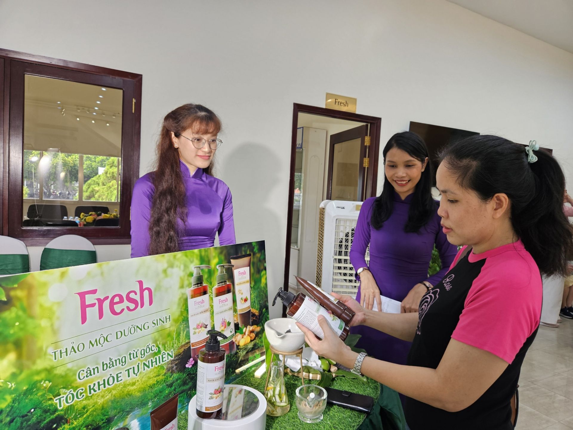 Chủ tịch Công ty CP Mỹ phẩm Sài Gòn Nguyễn Kim Thoa (áo dài hồng) nhận Giải “Thương hiệu quốc gia”