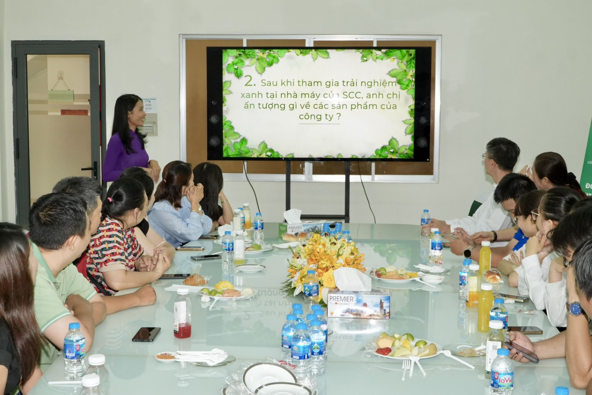 Trong khuôn khổ các dự án của chiến dịch Tiêu dùng xanh lần thứ 4, hoạt động “Trải nghiệm xanh đồng hành cùng doanh nghiệp” đã được triển khai tại SCC (Trong ảnh: Đoàn đại biểu và khách hàng thăm quan trực tiếp quy trình sản xuất xanh của SCC - Ảnh: Thùy Dương)