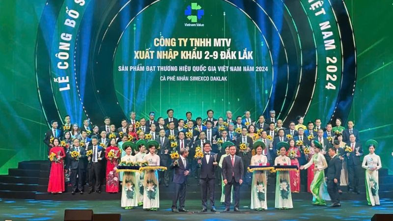 Chủ tịch Hội đồng thành viên kiêm Tổng giám đốc Simexco Daklak Lê Đức Huy, thay mặt đơn vị nhận biểu trưng và hoa chúc mừng doanh nghiệp có sản phẩm đạt Thương hiệu quốc gia Việt Nam 2024