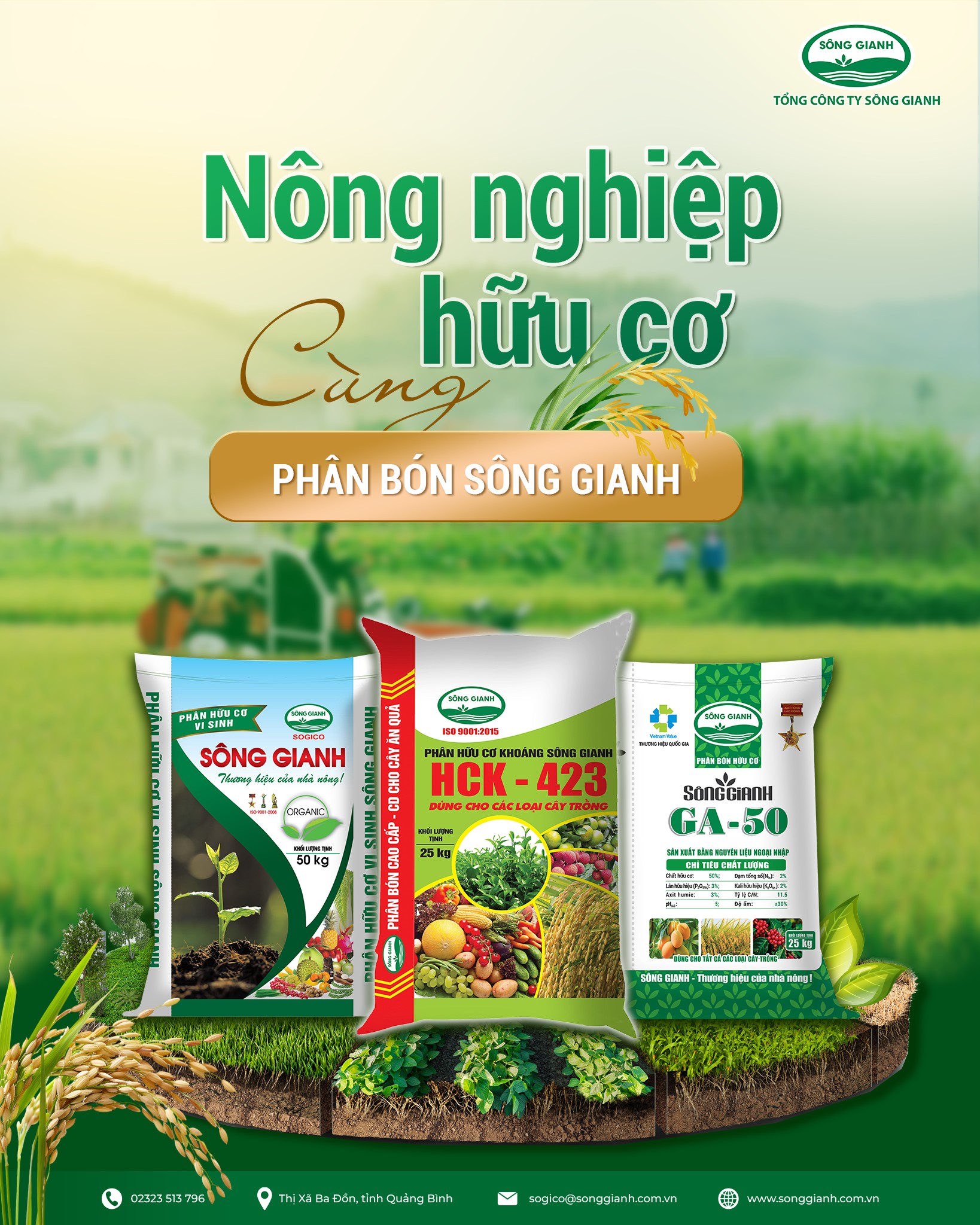 Nổi bật là 2 dòng sản phẩm: Phân hữu cơ vi sinh Sông Gianh HC15 và phân bón hữu cơ Sông Gianh BO-60.