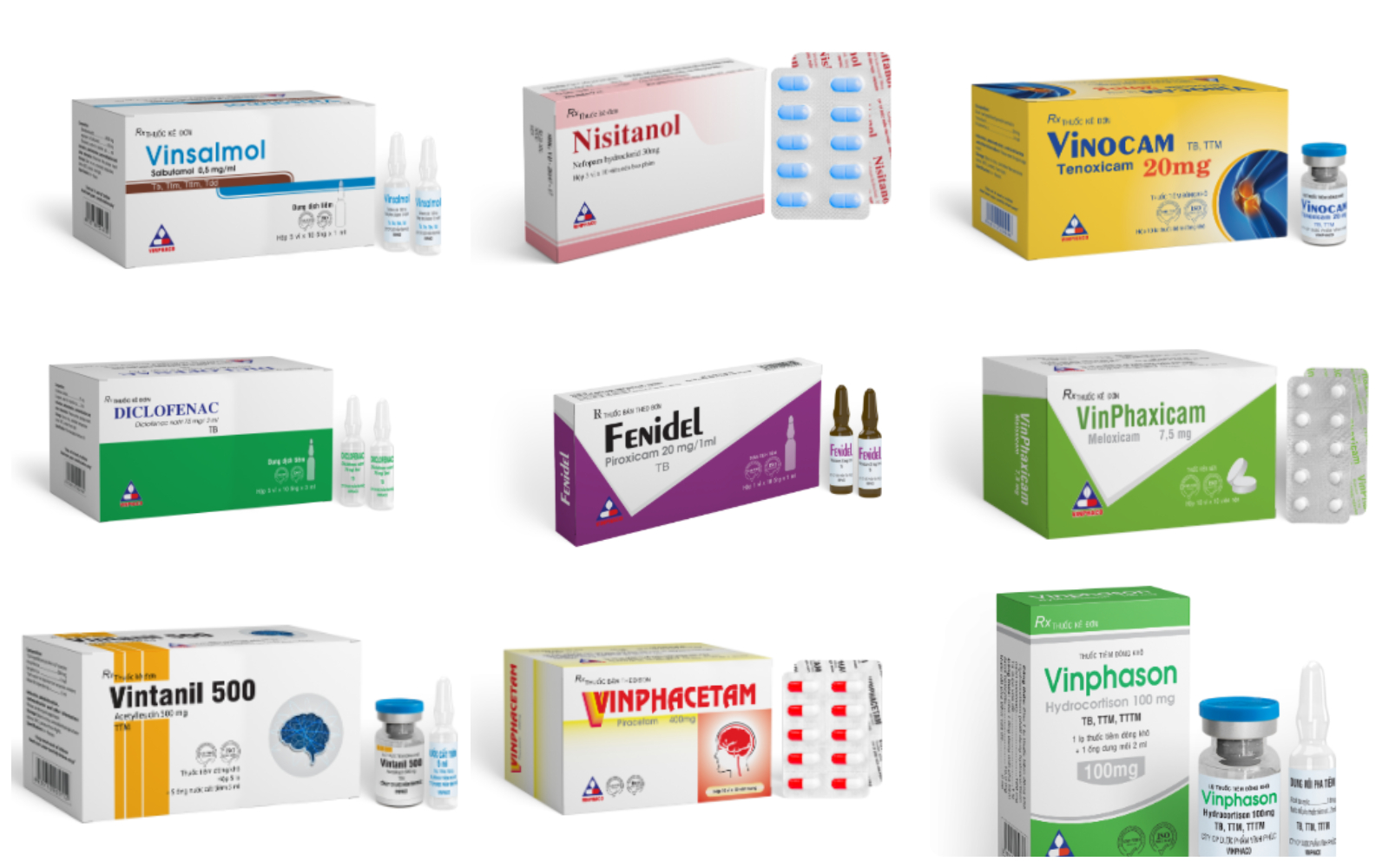 Vinphaco sản xuất nhiều loại thuốc tiêm điều trị các bệnh thần kinh, điển hình như Vintanil 500 (điều trị rối loạn tiền đình, chóng mặt), Vinphacetam (tăng cường tuần hoàn máu não, điều trị rung giật cơ), Vinphaton (cải thiện tuần hoàn não, giảm triệu chứng liên quan đến đột quỵ và sa sút trí tuệ).
