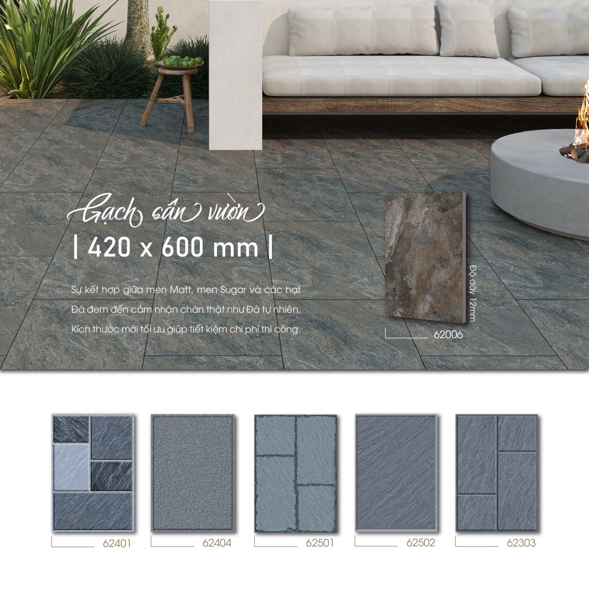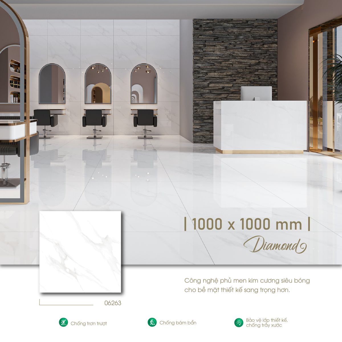 Gạch có kết cấu xương gạch đa dạng như Ceramic, Porcelain, Ultra Porcelain, chất lượng vượt trội, độ bền cao, khả năng hút nước thấp (dưới 0.5%), chống mài mòn tốt.