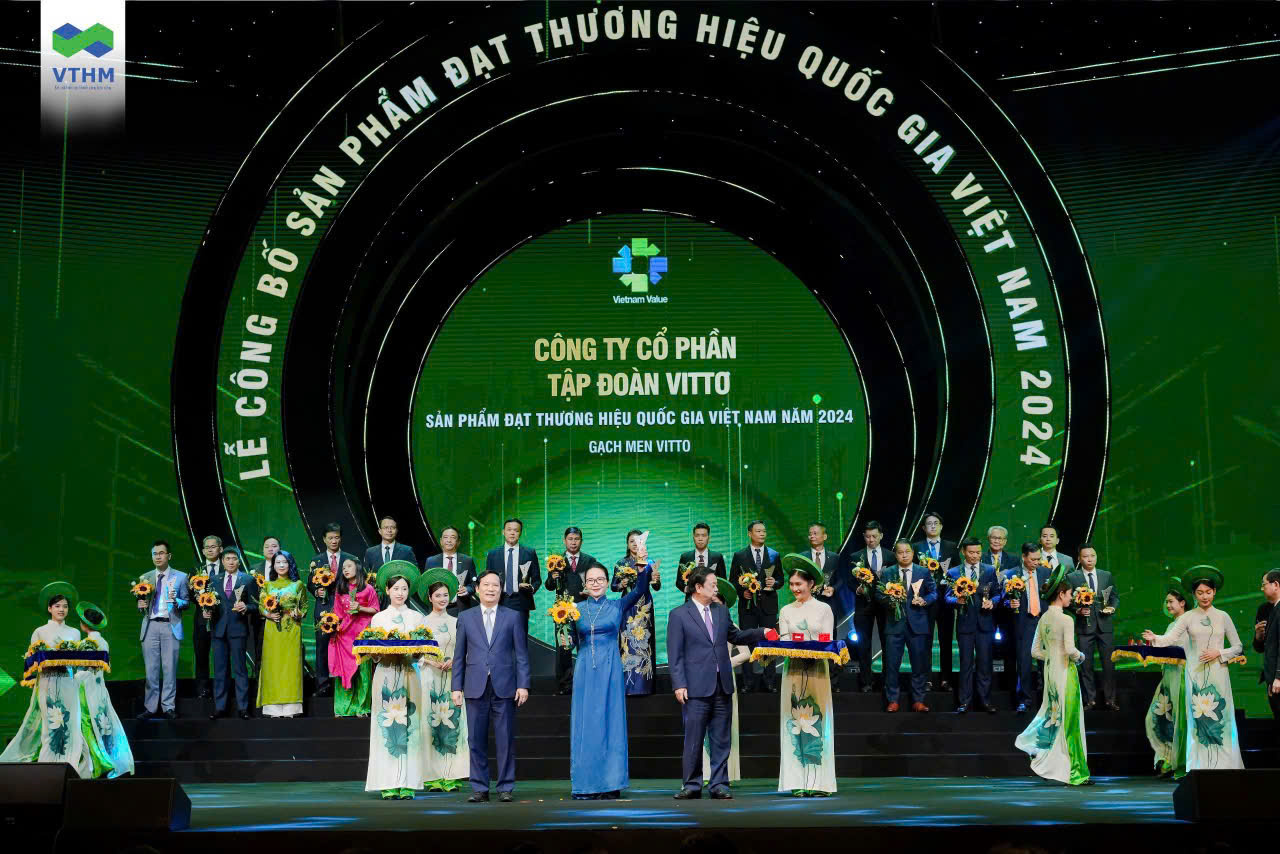 Gạch men Vitto của Công ty CP Tập đoàn Vitto - là sản phẩm được trao danh hiệu Thương hiệu quốc gia 2024, với 3 tiêu chí chất lượng, đổi mới sáng tạo và năng lực tiên phong.