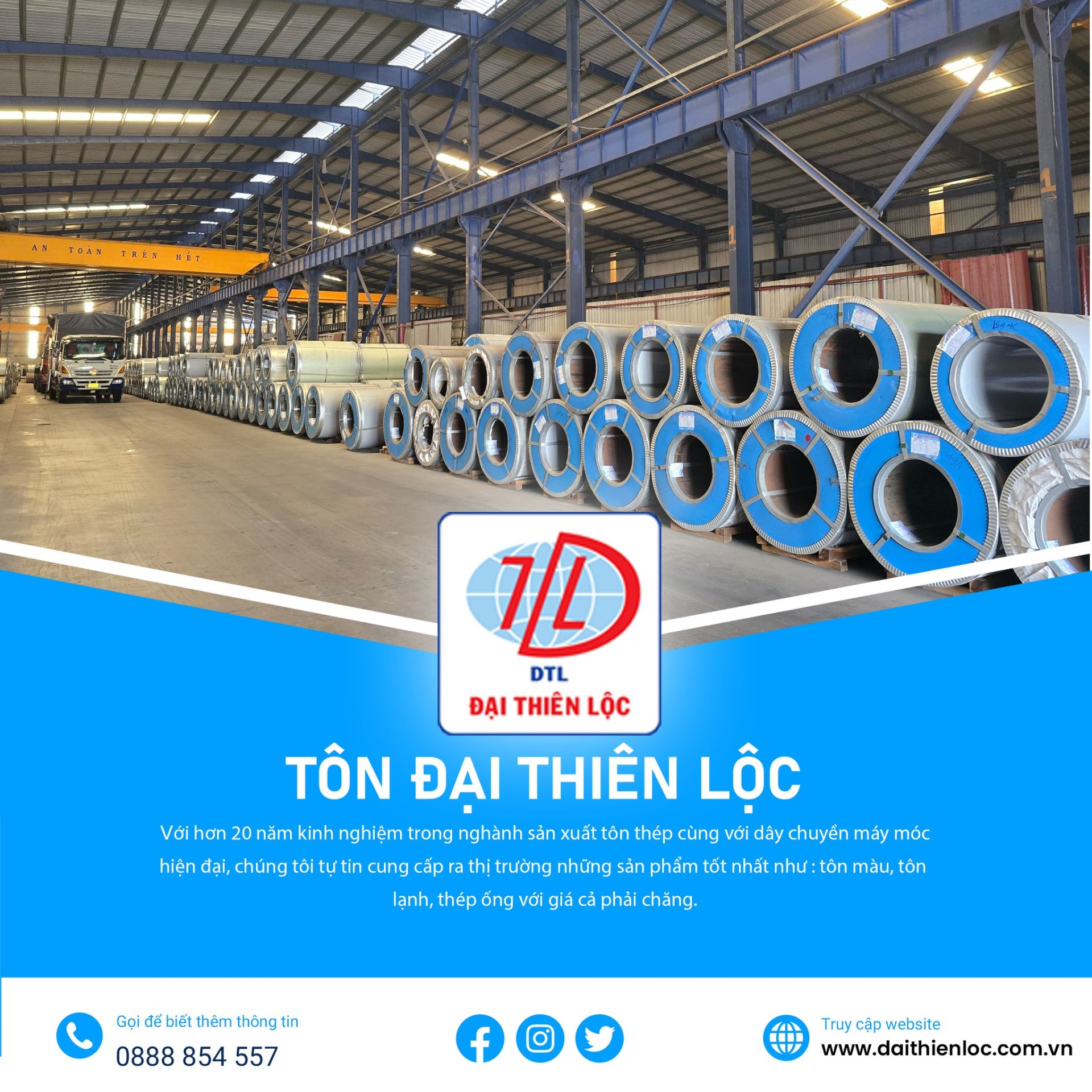 Công ty CP Đại Thiên Lộc - doanh nghiệp sản xuất thép hàng đầu tại Việt Nam, chuyên sản xuất và kinh doanh ống thép, thép cán nguội, thép cán nóng, thép tấm, thép hình, tôn mạ kẽm, tôn mạ màu, tôn lạnh... Công ty có hệ thống sản xuất hiện đại và mạng lưới phân phối rộng khắp cả nước; đồng thời xuất khẩu sản phẩm sang nhiều quốc gia.