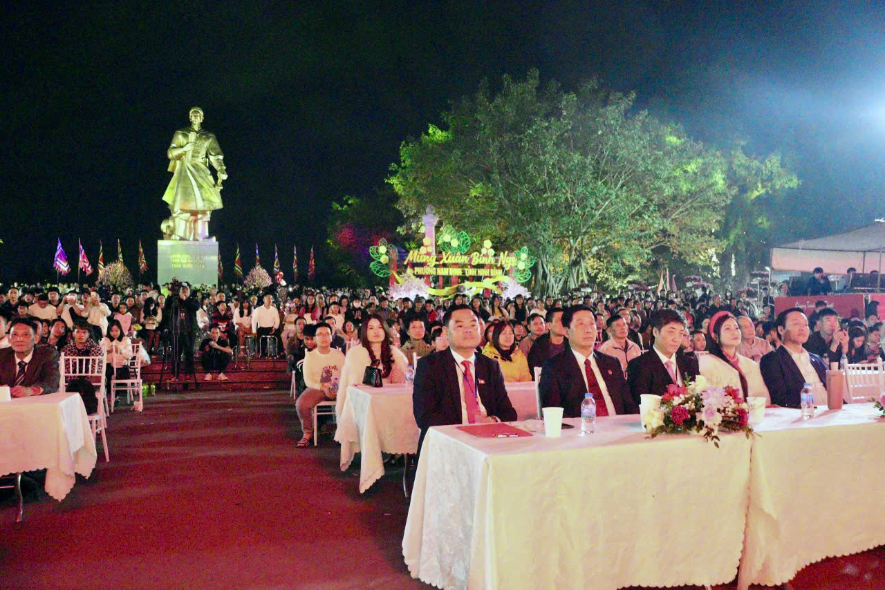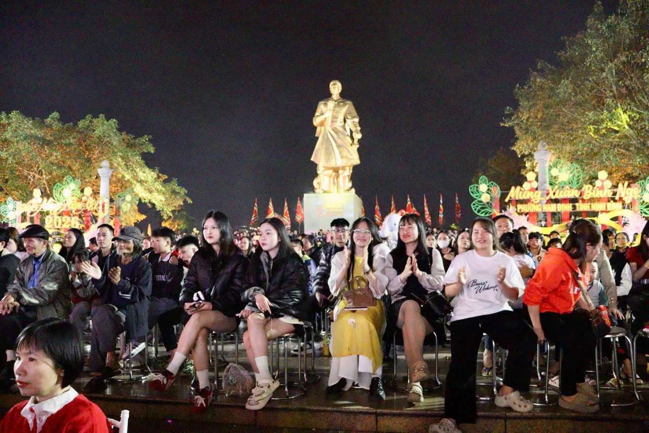Sân khấu được đầu tư hoành tráng với hệ thống âm thanh, ánh sáng hiện đại, nổi bật dòng chữ “Quê Hương Ninh Bình 2026” lung linh sắc màu. Những tiết mục ca múa nhạc đặc sắc, được dàn dựng công phu, mang đến cho khán giả bữa tiệc nghệ thuật mãn nhãn. Từ những giai điệu ca ngợi Đảng, quê hương, đất nước đến các ca khúc trẻ trung, sôi động, tất cả tạo nên bức tranh âm thanh rộn ràng, lan tỏa niềm tin và khát vọng trong năm mới.