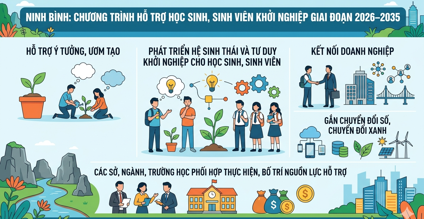 Việc triển khai đồng bộ Chương trình không chỉ góp phần hình thành hệ sinh thái khởi nghiệp trong nhà trường một cách thực chất, mà còn tạo nền tảng để học sinh, sinh viên hiện thực hóa ý tưởng, hình thành doanh nghiệp khởi nguồn, đóng góp tích cực vào phát triển kinh tế - xã hội của tỉnh Ninh Bình trong giai đoạn mới.