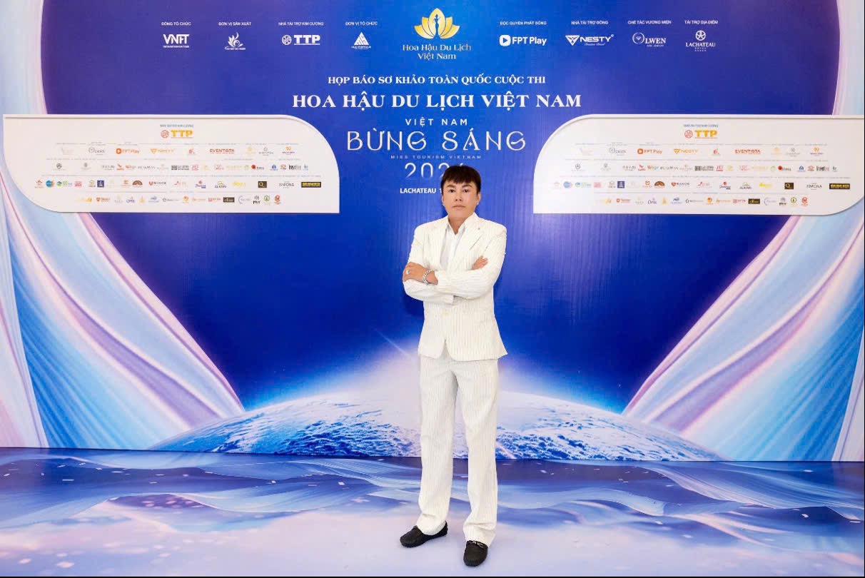 Mới đây, tại một buổi họp báo hoa hậu diễn ra trong không gian sang trọng như lâu đài dát vàng tại TP.HCM. Giữa biển ánh đèn flash, Tommy Nguyễn bước vào với phong thái đĩnh đạc của người đã quen ở tâm điểm ống kính. Bộ suit trắng kem kẻ sọc mảnh, may đo tinh tế, phối phụ kiện tối giản, khiến hình ảnh anh toát lên vẻ lịch lãm, chuẩn mực của “người đứng sau” những màn tỏa sáng rực rỡ nhất của các nữ hoàng sắc đẹp.