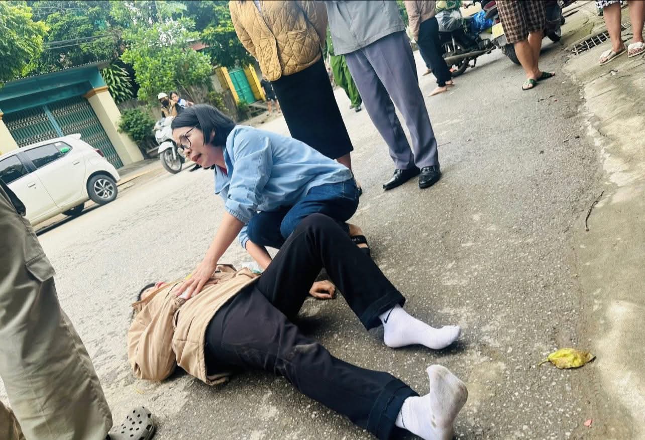 Không chút ngần ngại, Bác sỹ Hường trực tiếp kiểm tra mạch, sơ cứu ban đầu cho nạn nhân đang nằm bất động giữa đường
