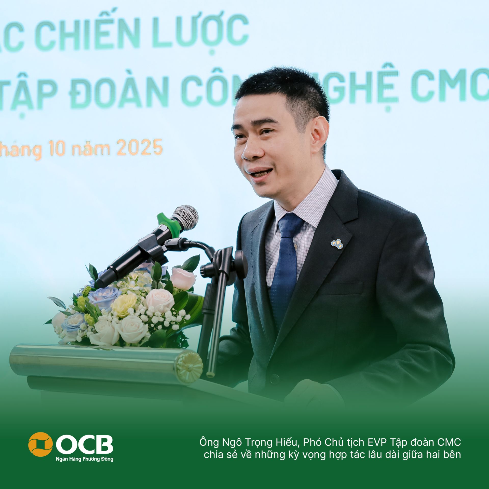 Ông Ngô Trọng Hiếu, Phó Chủ tịch EVP Tập đoàn CMC chia sẻ tại sự kiện: “OCB và CMC có nhiều điểm chung trong triết lý phát triển, không chạy theo tốc độ hay quy mô, mà chú trọng sự chuẩn mực, bền vững, hiệu quả và chất lượng lâu dài cho khách hàng. Sau nhiều năm đồng hành, chúng tôi cảm nhận rõ sự tin tưởng, thấu hiểu và đồng điệu giữa hai bên. Đó chính là nền tảng để OCB và CMC có thể hợp tác sâu rộng hơn, cùng hỗ trợ, cùng phát triển và cùng kiến tạo giá trị trong hành trình dài hạn phía trước” .