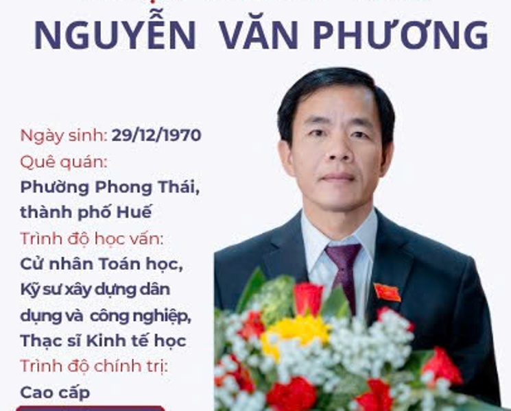 Ông Nguyễn Văn Phương sinh ngày29/12/1970, tạiPhường Phong Thái, thành phố Huế.Trình độ đào tạo Cử nhân Toán học, Kỹ sư xây dựng dân dụng và công nghiệp, Thạc sĩ Kinh tế học. Lý luận chính trị cao cấp.