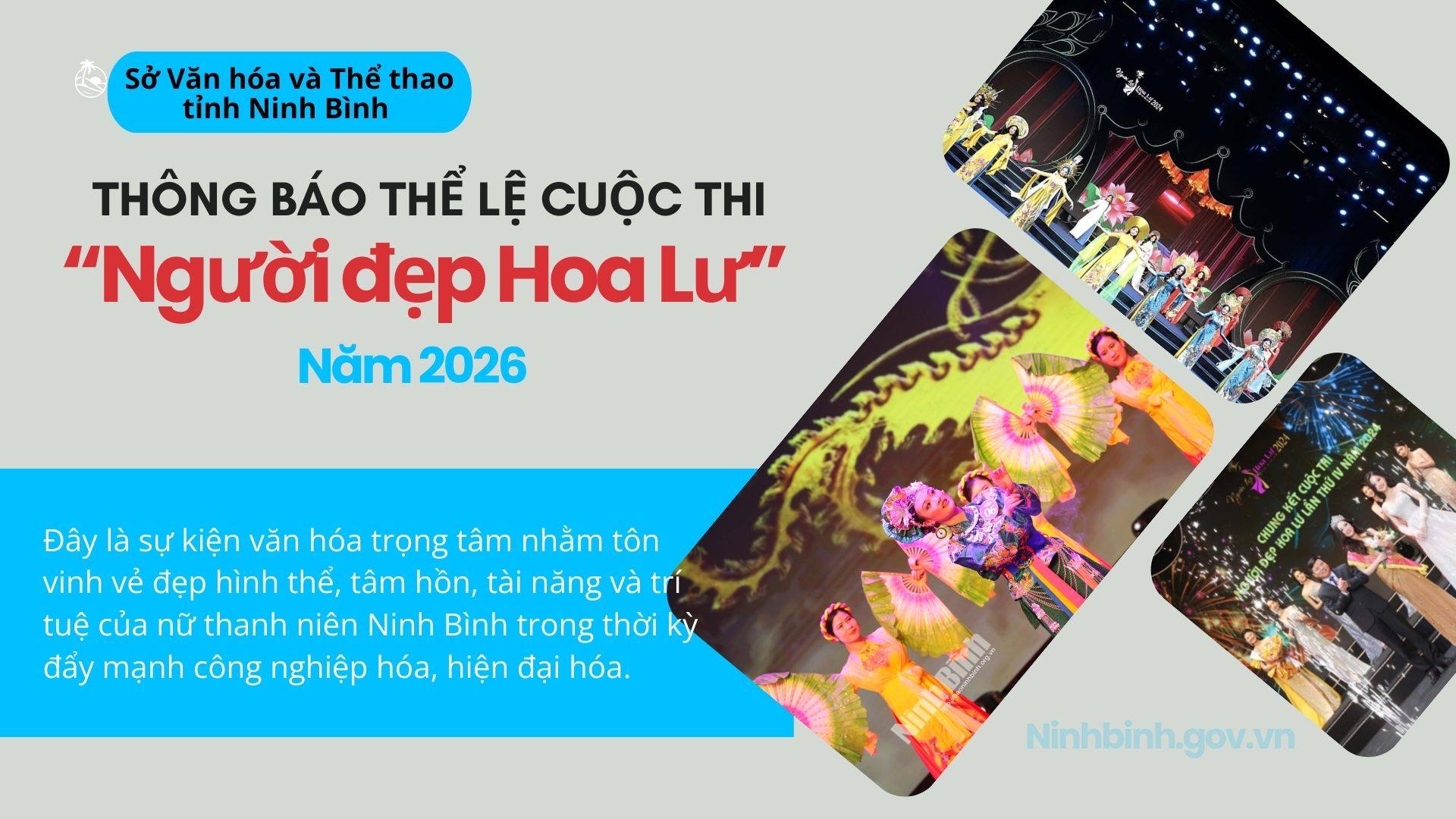 Việc tổ chức Cuộc thi Người đẹp Hoa Lư năm 2026 không chỉ tạo sân chơi văn hóa lành mạnh cho nữ thanh niên, mà còn góp phần lan tỏa hình ảnh con người Ninh Bình năng động, tự tin, thân thiện; qua đó quảng bá tiềm năng văn hóa, du lịch của Ninh Bình đến đông đảo bạn bè và du khách trong nước, quốc tế.