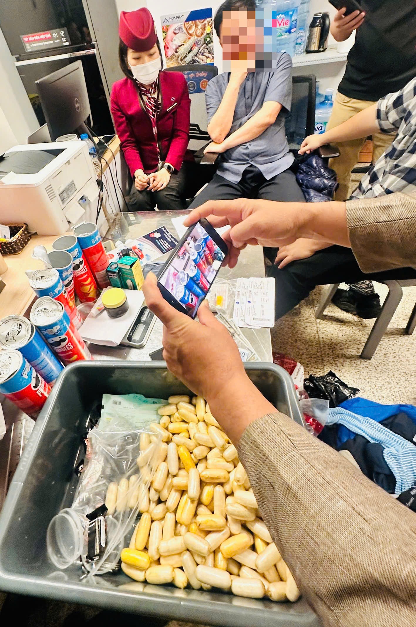 Cụ thể, vào hồi 12 giờ 20 phút ngày 25/2/2026, qua công tác phân tích, đánh giá rủi ro đối với hành khách trên các tuyến bay trọng điểm, Đội Kiểm soát chống buôn lậu ma túy số 1 (Đội 5) - Chi cục Điều tra chống buôn lậu chủ trì, phối hợp với Hải quan cửa khẩu sân bay quốc tế Nội Bài (Chi cục Hải quan Khu vực I) và các đơn vị chức năng của Công an TP. Hà Nội, Công an cửa khẩu Sân bay quốc tế Nội Bài tiến hành kiểm tra một hành khách quốc tịch Hàn Quốc nhập cảnh trên chuyến bay từ Qatar về Nội Bài.