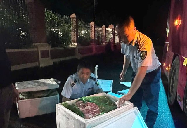 Qua kiểm tra, Đoàn kiểm tra phát hiện trên xe tải vận chuyển 251 kg thịt heo đông lạnh không rõ nguồn gốc xuất xứ, không có dấu kiểm dịch động vật. Tại thời điểm kiểm tra, tài xế xe khách không cung cấp được giấy tờ chứng minh tính hợp pháp của toàn bộ 251 kg thịt heo trên xe. Đồng thời khai nhận đang trên đường vận chuyển thịt heo từ Gia Lai về TP. Nha Trang để tiêu thụ.