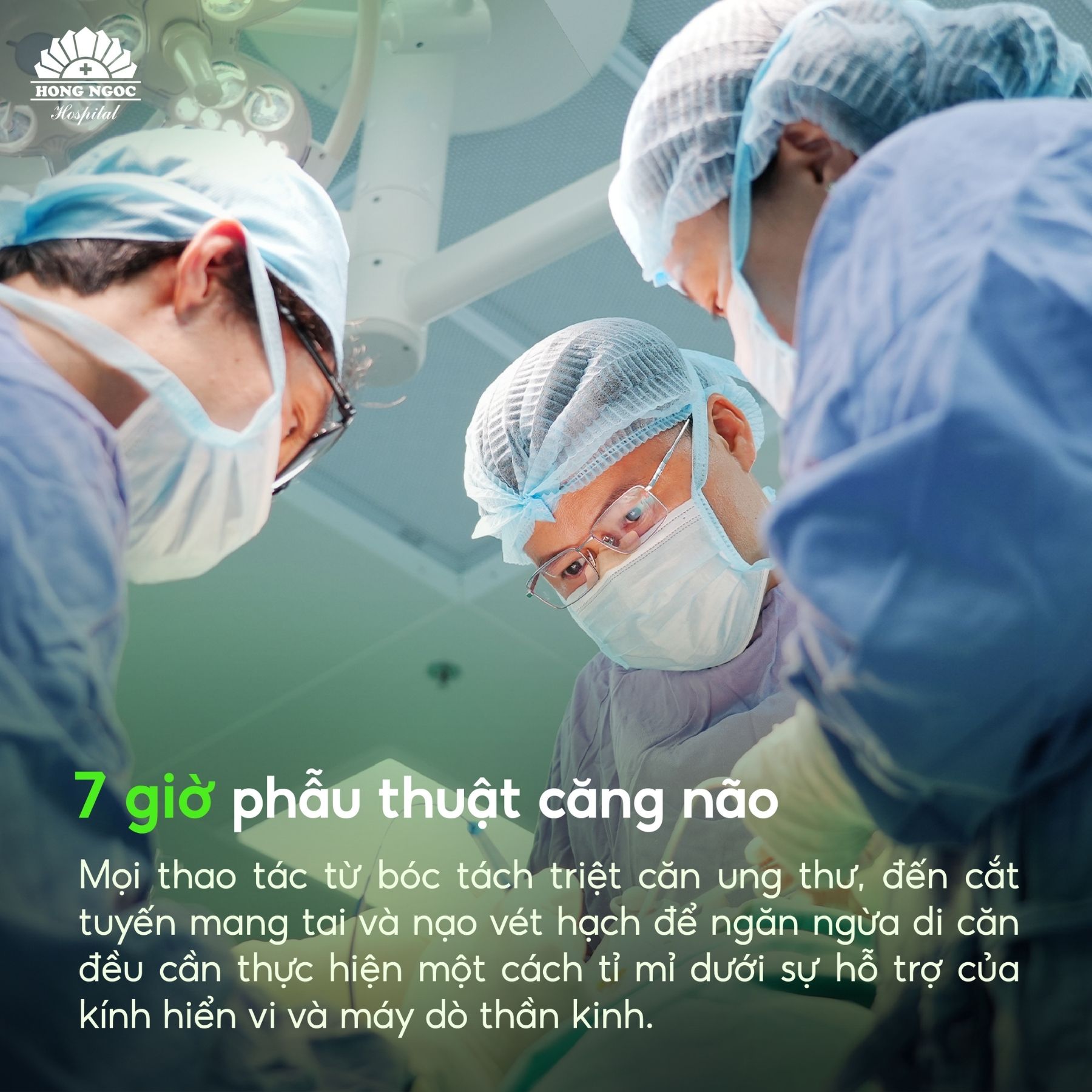Để vừa loại bỏ triệt để khối ung thư, vừa bảo tồn khả năng vận động cơ mặt và yếu tố thẩm mỹ cho người bệnh, ê-kíp bác sĩ BVĐK Hồng Ngọc đã chuẩn bị kỹ lưỡng nhiều phương án xử trí, sẵn sàng ứng phó với mọi tình huống có thể xảy ra trong phẫu thuật.
