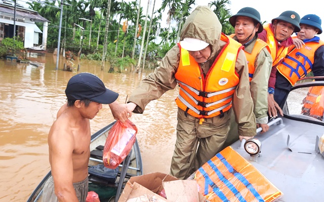 Chiều 30/10, ông Trần Phước Sơn, Ủy viên Ban Thường vụ, Phó Chủ tịch Thường trực HĐND TP. Đà Nẵng, đến thăm động viên bà con vùng lũ tại xã Đại Lộc. Đi cùng đoàn có Đại tá Hoàng Văn Mẫn, Chính ủy Ban chỉ huy Bộ đội Biên phòng TP. Đà Nẵng.