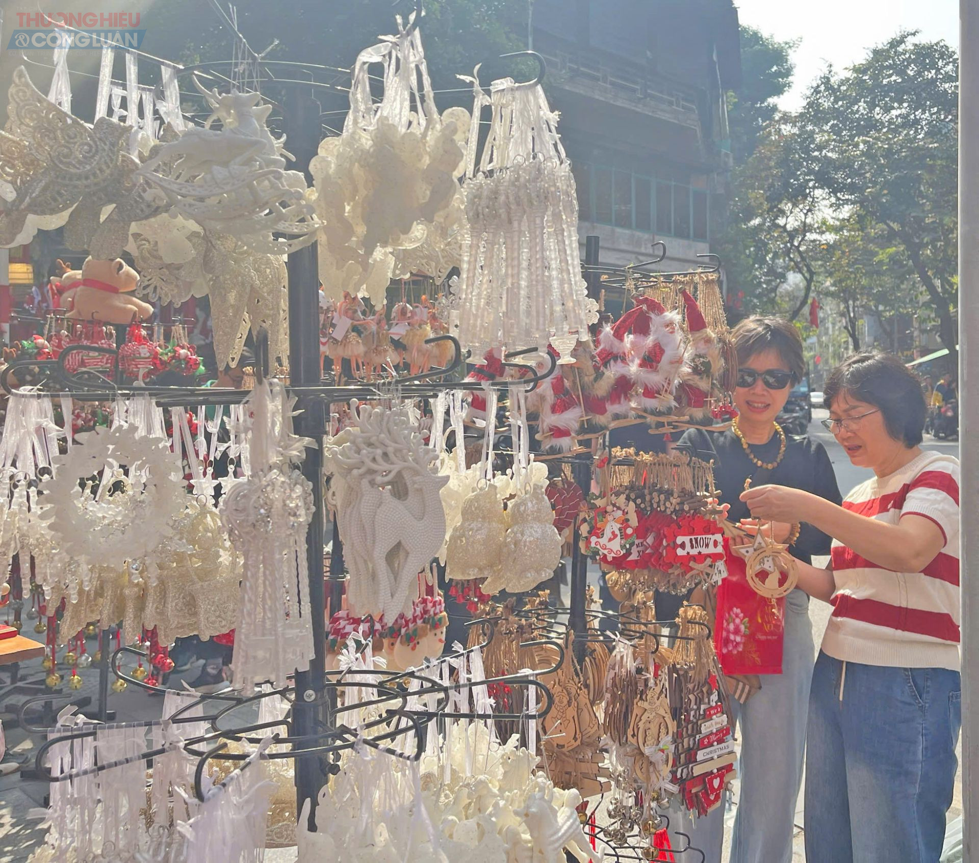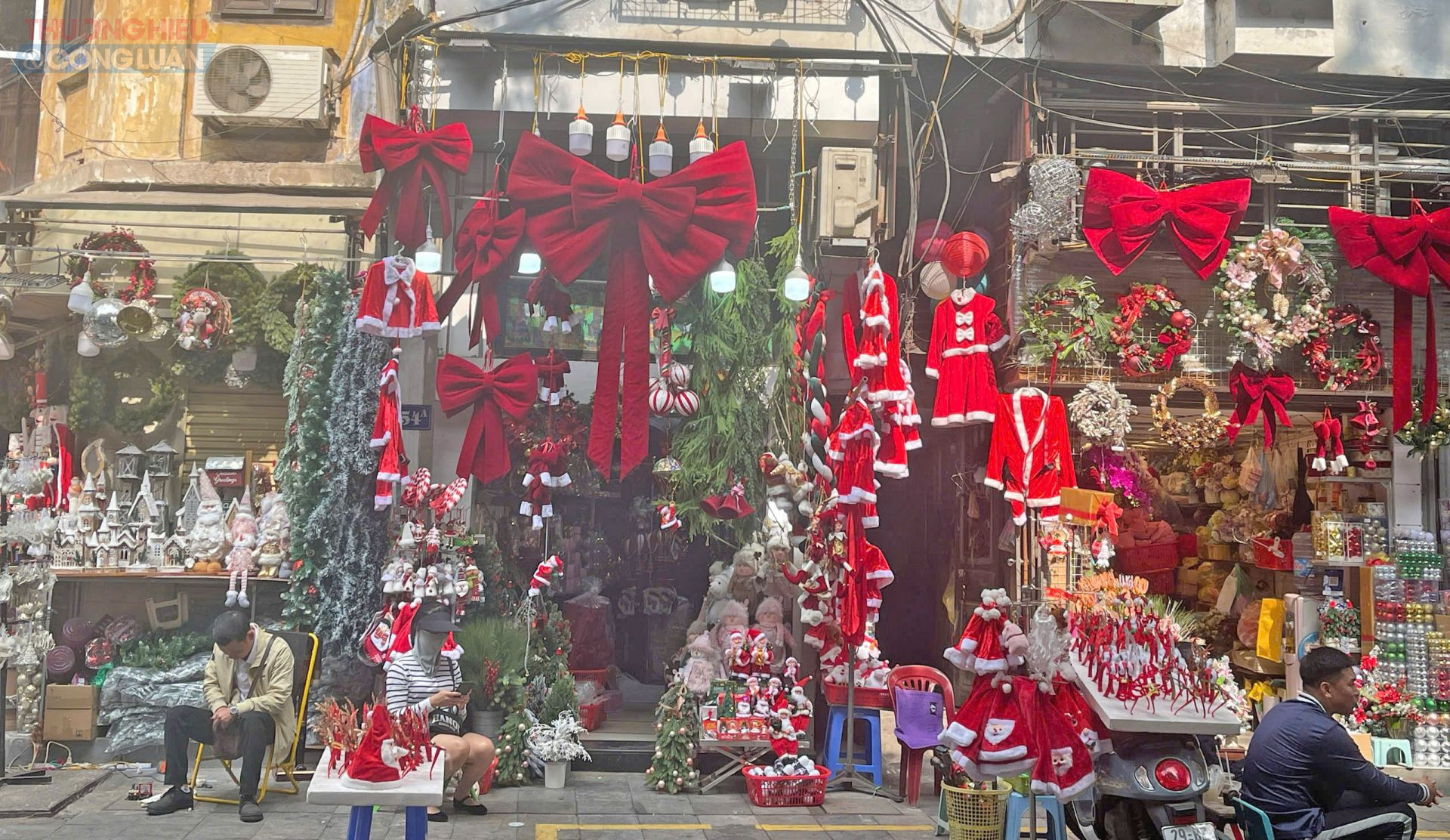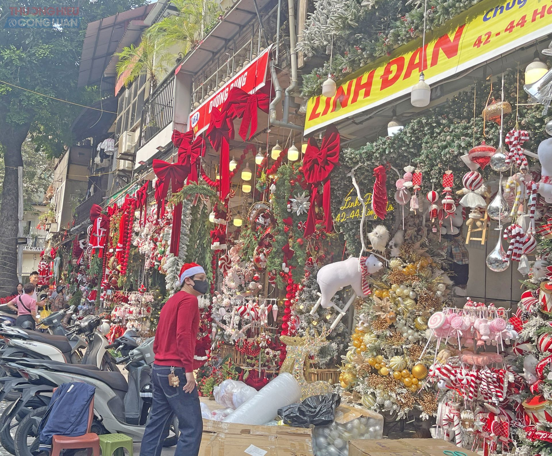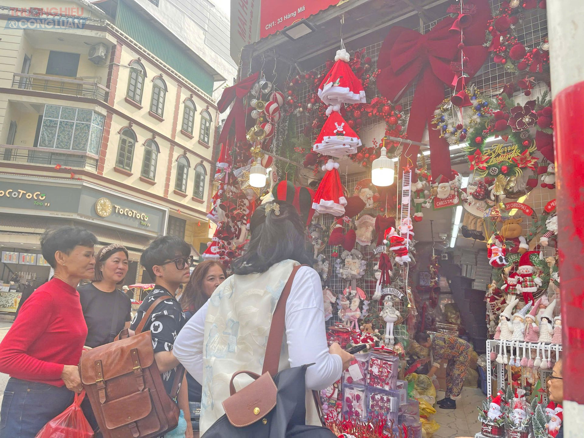 Dạo quanh tuyến phố Hàng Mã những ngày này, dễ dàng cảm nhận không khí Giáng sinh hiện diện khắp nơi. Các cửa hàng kinh doanh đồ trang trí và quà lưu niệm đồng loạt trang hoàng lộng lẫy, bày bán đầy đủ những vật phẩm đặc trưng của mùa lễ hội. Từ cây thông Noel, ông già Noel, vòng nguyệt quế cho đến các món đồ trang trí nhỏ xinh, tất cả được sắp xếp gọn gàng, bắt mắt, góp phần tạo nên không gian lễ hội rực rỡ giữa lòng Thủ đô.