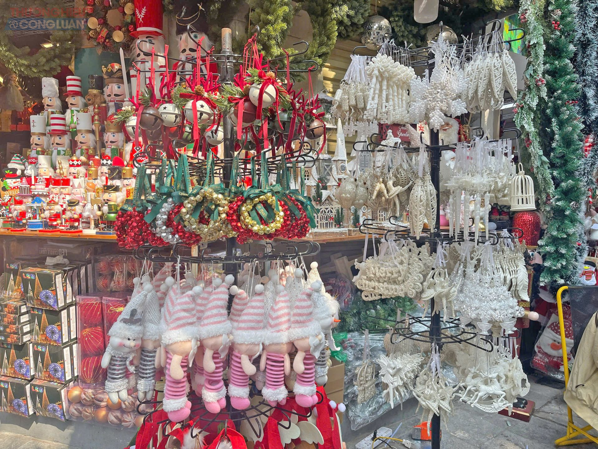 Đi kèm với sự phong phú về chủng loại là mức giá khá linh hoạt. Vòng nguyệt quế có giá từ 100.000 - 500.000 đồng; tất Noel dao động từ 50.000 - 150.000 đồng/chiếc. Các sản phẩm như gấu bông, cầu tuyết, đồ trang trí mini phổ biến trong khoảng 50.000 - 250.000 đồng. Quả châu trang trí cây thông được bán với giá từ 25.000 - 80.000 đồng/hộp 6 quả; bờm Noel có giá từ 15.000 - 40.000 đồng/cái.