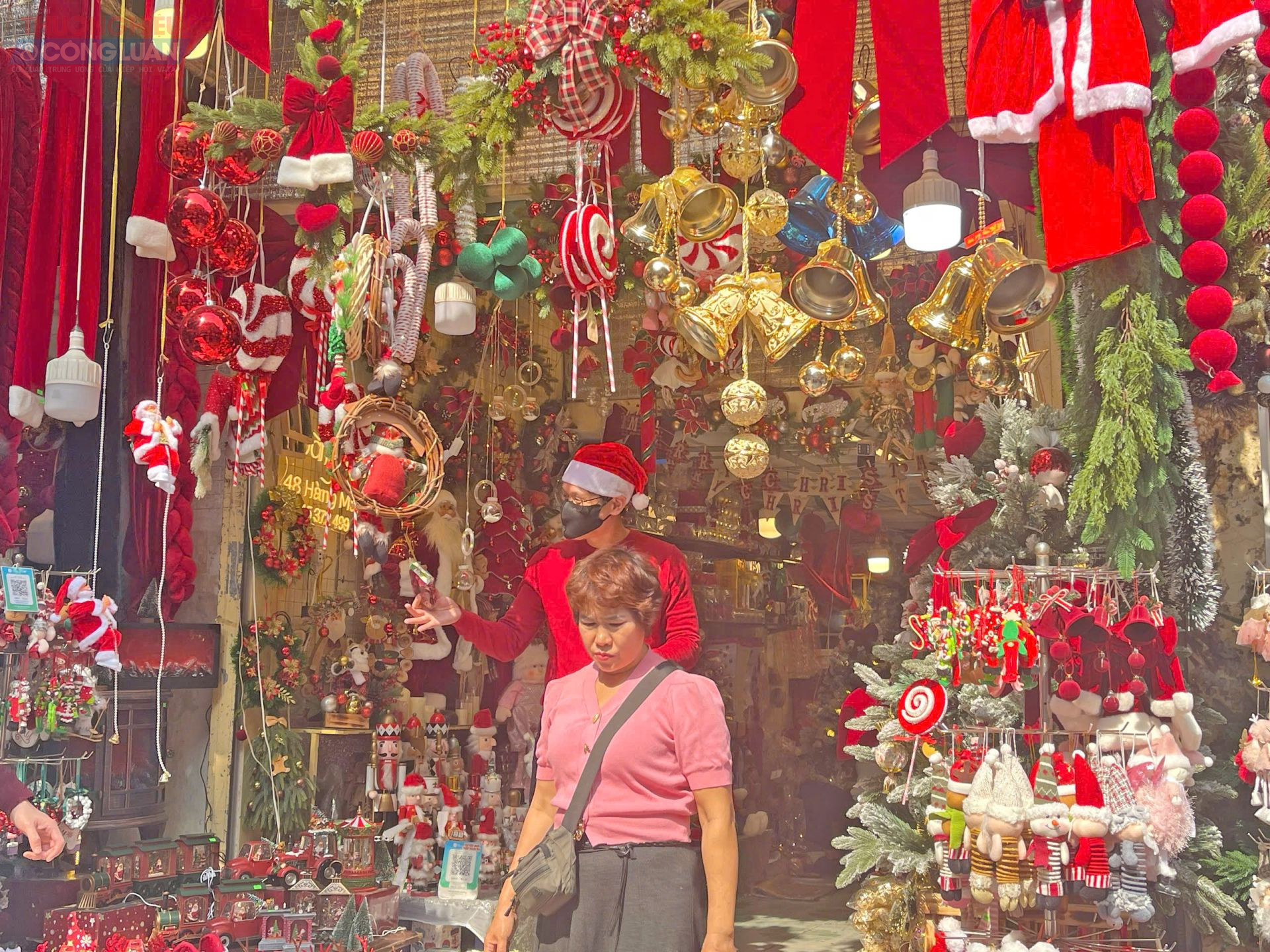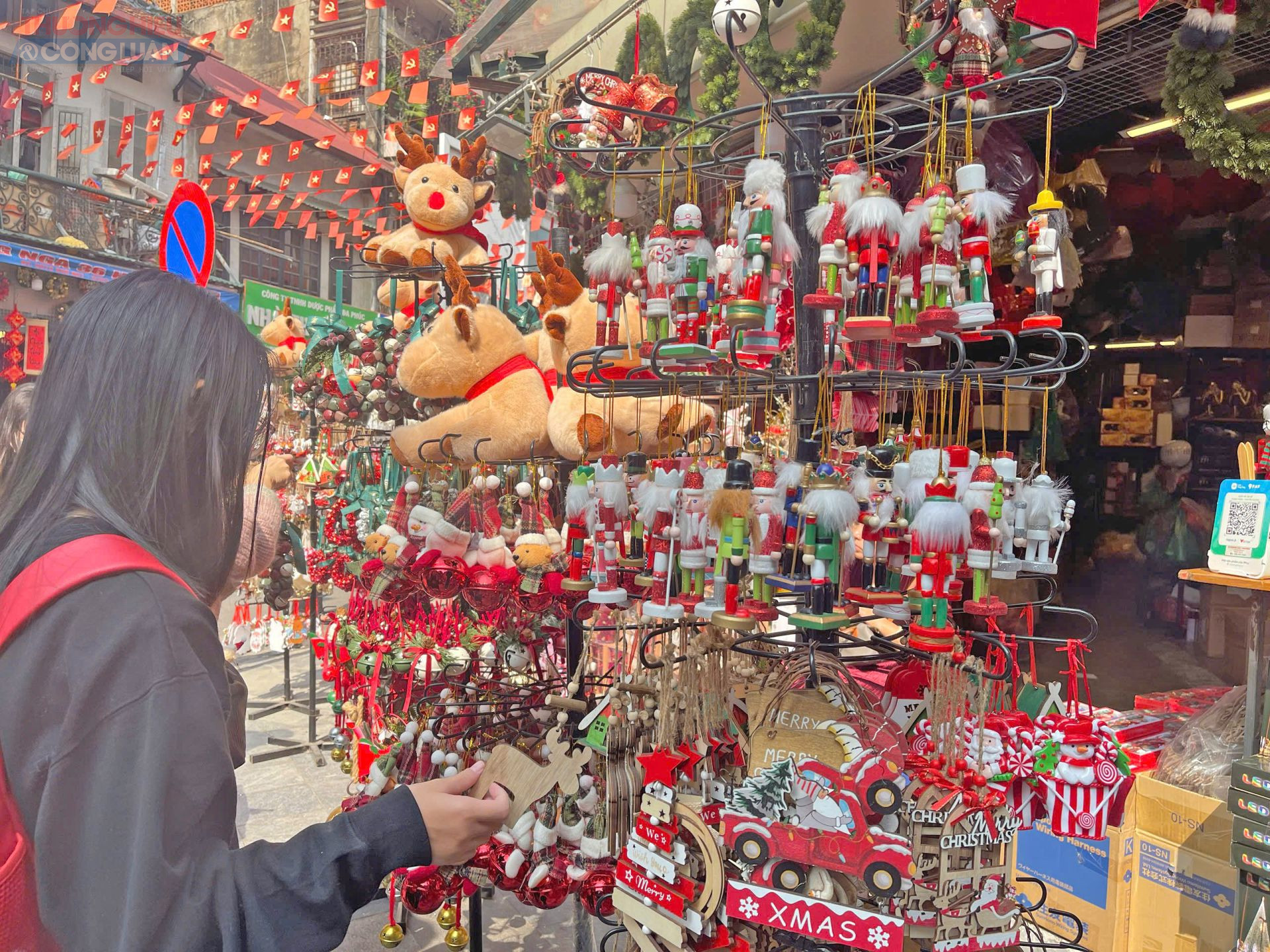 Một số hình ảnh thị trường đồ trang trí Noel 2025 bán tại phố Hàng Mã, Hà Nội: