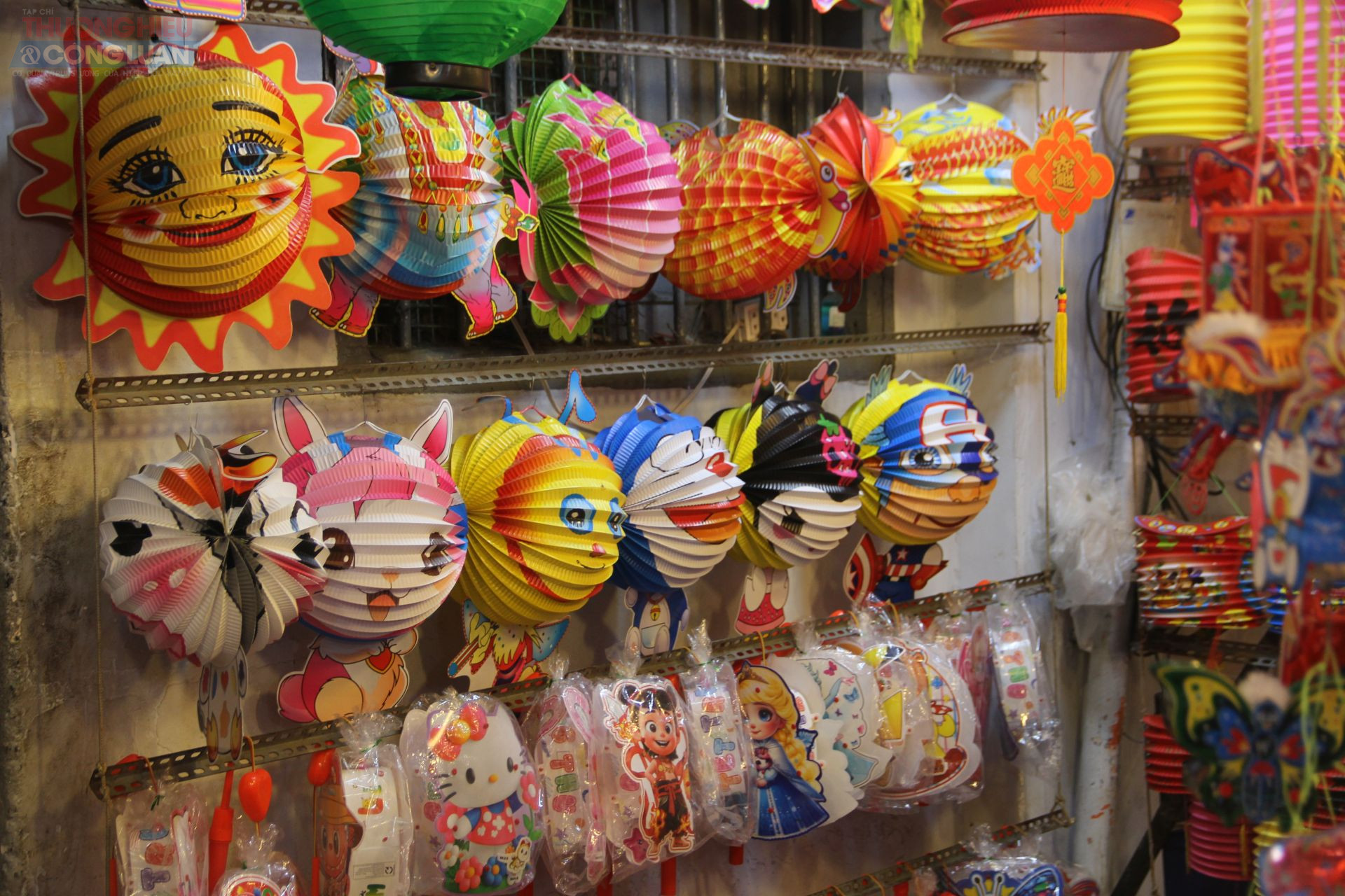 Điểm nổi bật của mùa Trung thu năm nay tại phố Lương Nhữ Học chính là sự phong phú trong mẫu mã. Lồng đèn giấy kiếng truyền thống hình ngôi sao, cá chép, thỏ ngọc… vẫn chiếm được cảm tình của nhiều khách hàng lớn tuổi hoặc các bậc phụ huynh muốn truyền lại nét văn hóa xưa cho con em.