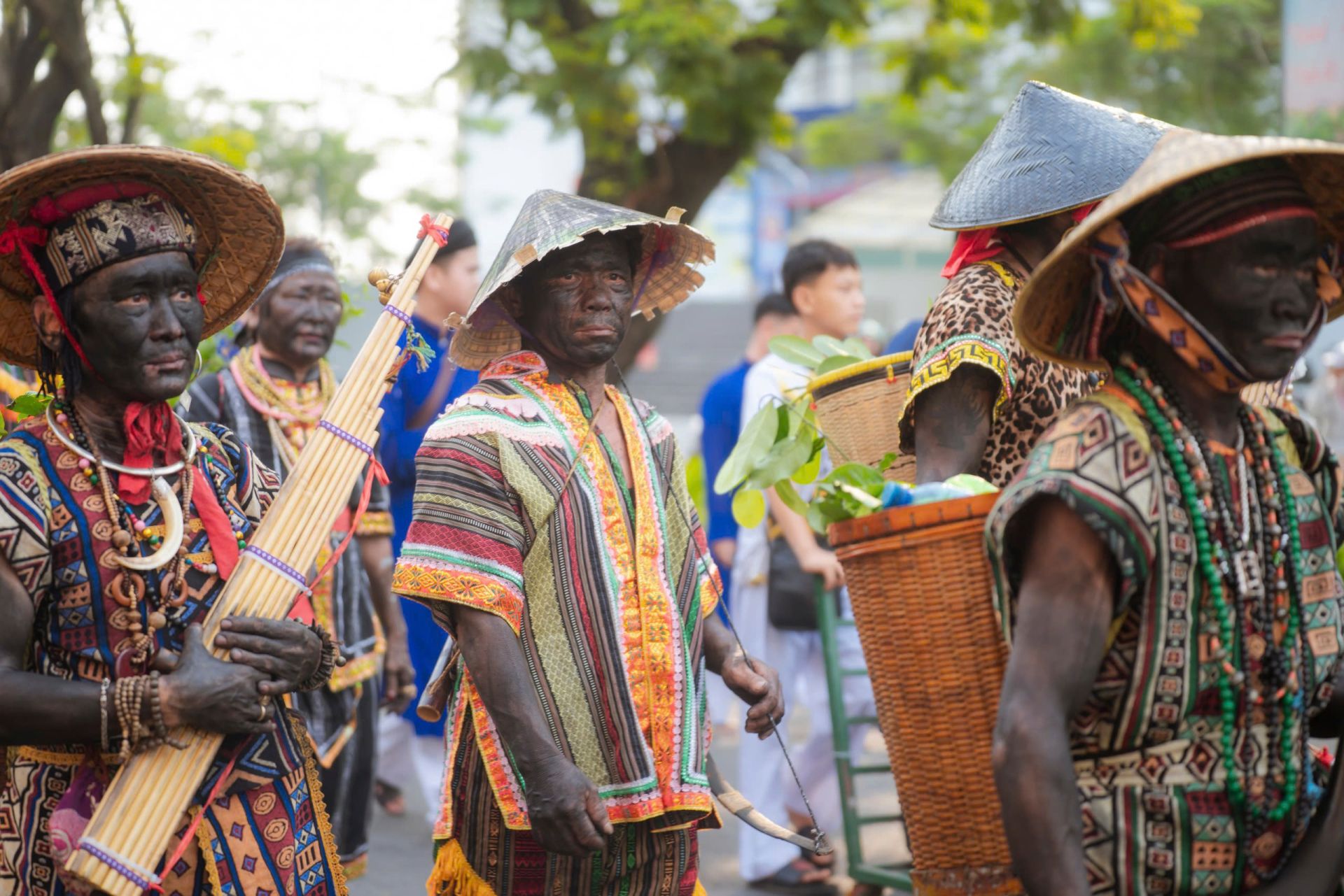 Dọc 2 bên đường đoàn rước đi qua có rất nhiều người dân du khách chào đón, tạo nên không khí lễ hội cộng đồng đầy màu sắc, độc đáo.