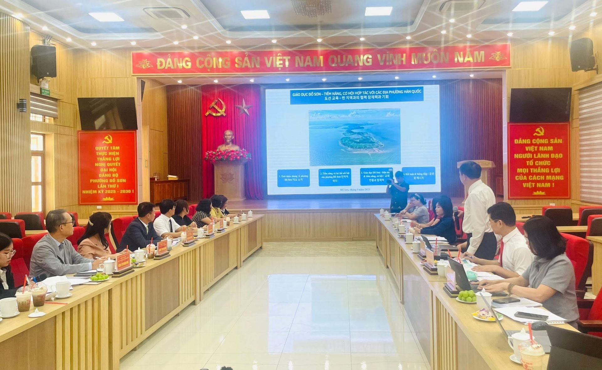 Trong chương trình, 02 bên đã tập trung thảo luận trao đổi về nhiều vấn đề quan trọng: Đẩy mạnh giảng dạy tiếng Hàn trong các trường học tại Đồ Sơn, mở rộng cơ hội học tập và hội nhập quốc tế cho học sinh. Xây dựng trung tâm giáo dục, trường song ngữ và trường quốc tế theo chuẩn quốc tế, đáp ứng nhu cầu đào tạo đa dạng. Tổ chức chương trình trao đổi học sinh – giáo viên, thúc đẩy giao lưu văn hóa, chia sẻ kinh nghiệm giảng dạy và học tập giữa Việt Nam và Hàn Quốc. Kết hợp phát triển giáo dục với các lĩnh vực hỗ trợ như logistics, du lịch nghỉ dưỡng, bất động sản phục vụ hạ tầng học tập và đời sống cho giáo viên, sinh viên quốc tế.