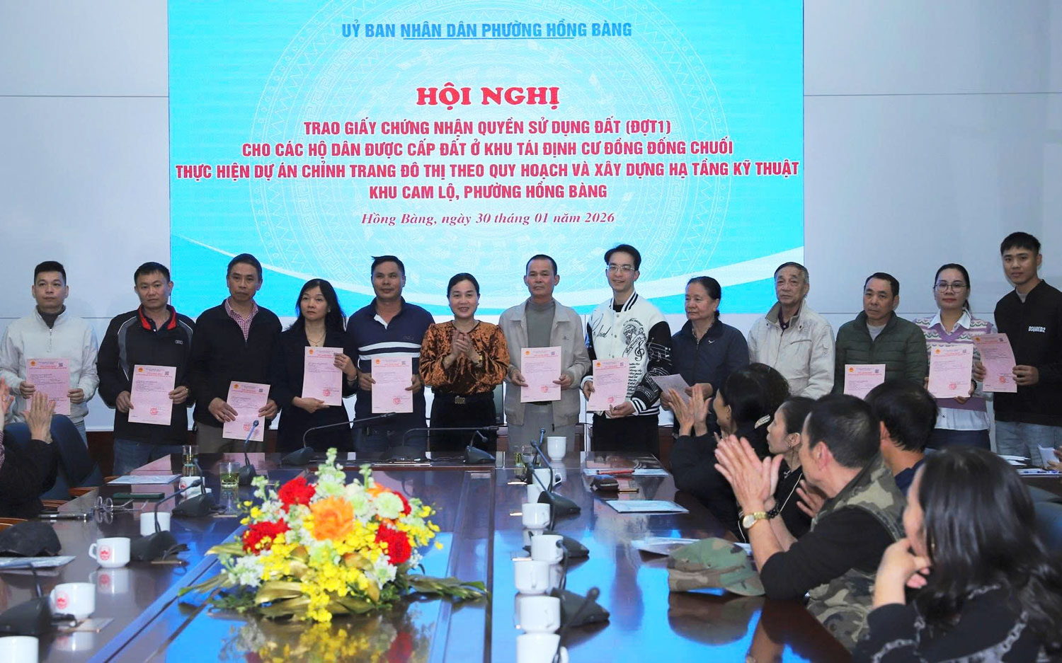 Nhằm bảo đảm người dân có đất ở bị thu hồi sớm ổn định cuộc sống, phường Hồng Bàng đẩy nhanh tiến độ xây dựng và bố trí tái định cư. Phường ban hành quyết định giao đất 73 hộ dân. Từ nay đến trước dịp nghỉ Tết Nguyên đán Bính Ngọ năm 2026, phường Hồng Bàng bảo đảm hoàn thành cấp Giấy chứng nhận quyền sử dụng đất ở đối với các hộ dân bàn giao mặt bằng và có quyết định giao đất. Cùng với đó, phường bảo đảm hỗ trợ người dân thực hiện các thủ tục cấp phép xây dựng; tổ chức xây dựng nhà ở tại khu tái định cư theo mẫu kiến trúc được phê duyệt.