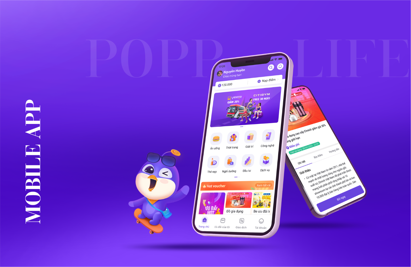 Thông qua app Popplife, người dùng khi mua bất động sản, mua hàng siêu thị, đi du lịch, sử dụng thẻ tín dụng của các đối tác hợp tác với Popplife … thì đều được tích điểm Popp. Sau đó, họ có thể dùng chính điểm Popp này để đổi kho quà trên Popplife. Điểm tích lũy được sử dụng để trải nghiệm dịch vụ đa dạng cùng hơn 3.000 Voucher đến từ hơn 1.000 đối tác ưu đãi lên tới 50% với nhiều lĩnh vực phong phú.
