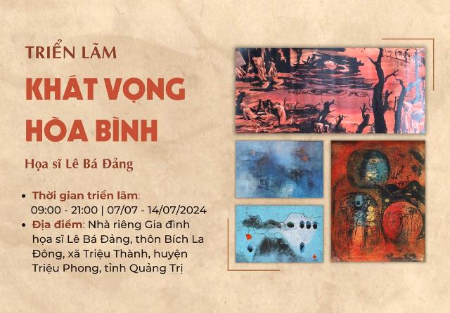 Hưởng ứng Lễ hội Vì Hòa bình tỉnh Quảng Trị năm 2024, UBND huyện Triệu Phong, tỉnh Quảng Trị phối hợp cùng gia đình tổ chức triển lãm các tác phẩm mỹ thuật với chủ đề “Khát vọng Hòa bình” của danh họa Lê Bá Đảng. Triển lãm được tổ chức tại nhà riêng gia đình họa sĩ Lê Bá Đảng ở thôn Bích La Đông, xã Triệu Thành, huyện Triệu Phong.
