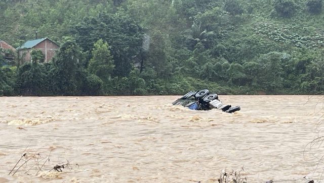 Hình ảnh người dân ghi lại cho thấy nước đỏ ngầu, cuồn cuộn tràn qua mặt đường, chiếc xe tải chao đảo dữ dội, nghiêng hẳn sang một bên trước khi bị nước lũ nhấn chìm.Trước lúc xe bị nhấn chìm, tài xế kịp thời leo lên và đứng trên thùng xe kêu gọi cứu hộ, nhưng đã muộn, tài xế mất tích.