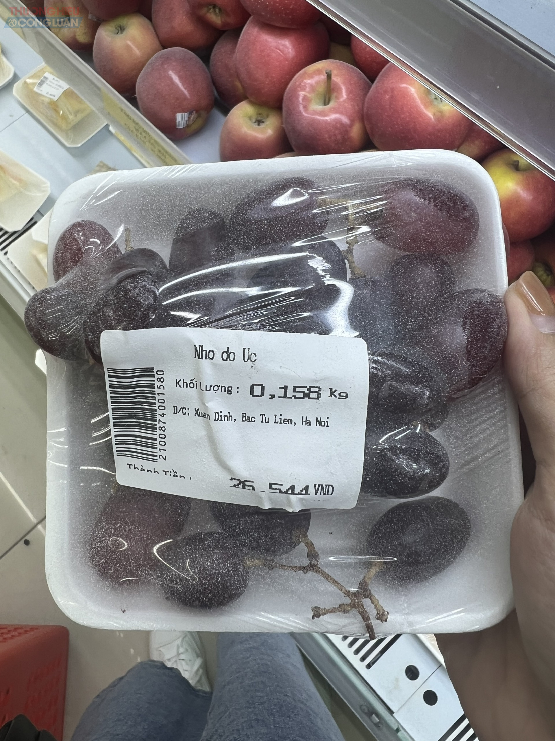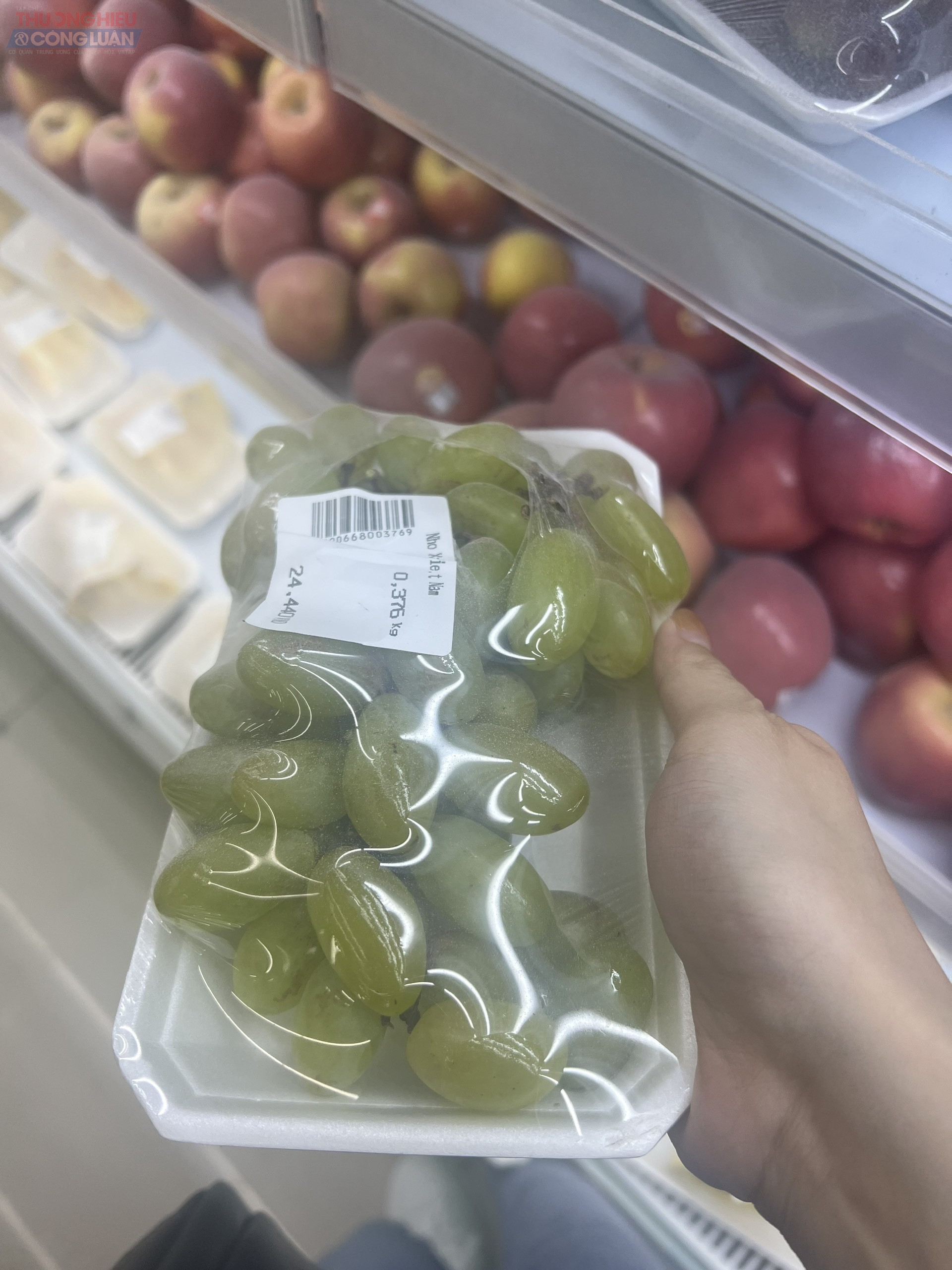 Hay như sản phẩm này là nho xanh Việt Nam, nhưng nhãn mác chỉ có vỏn vẹn dòng tên, trọng lượng và giá thành; không có các thông tin về nguồn gốc xuất xứ cụ thể, nơi nuôi trồng, nơi chịu trách nhiệm về sản phẩm, tiêu chuẩn trồng và thu hoạch, ngày sản xuất/đóng gói, hạn sử dụng…. Hơn nữa, bao bì đóng gói cũng rách…
