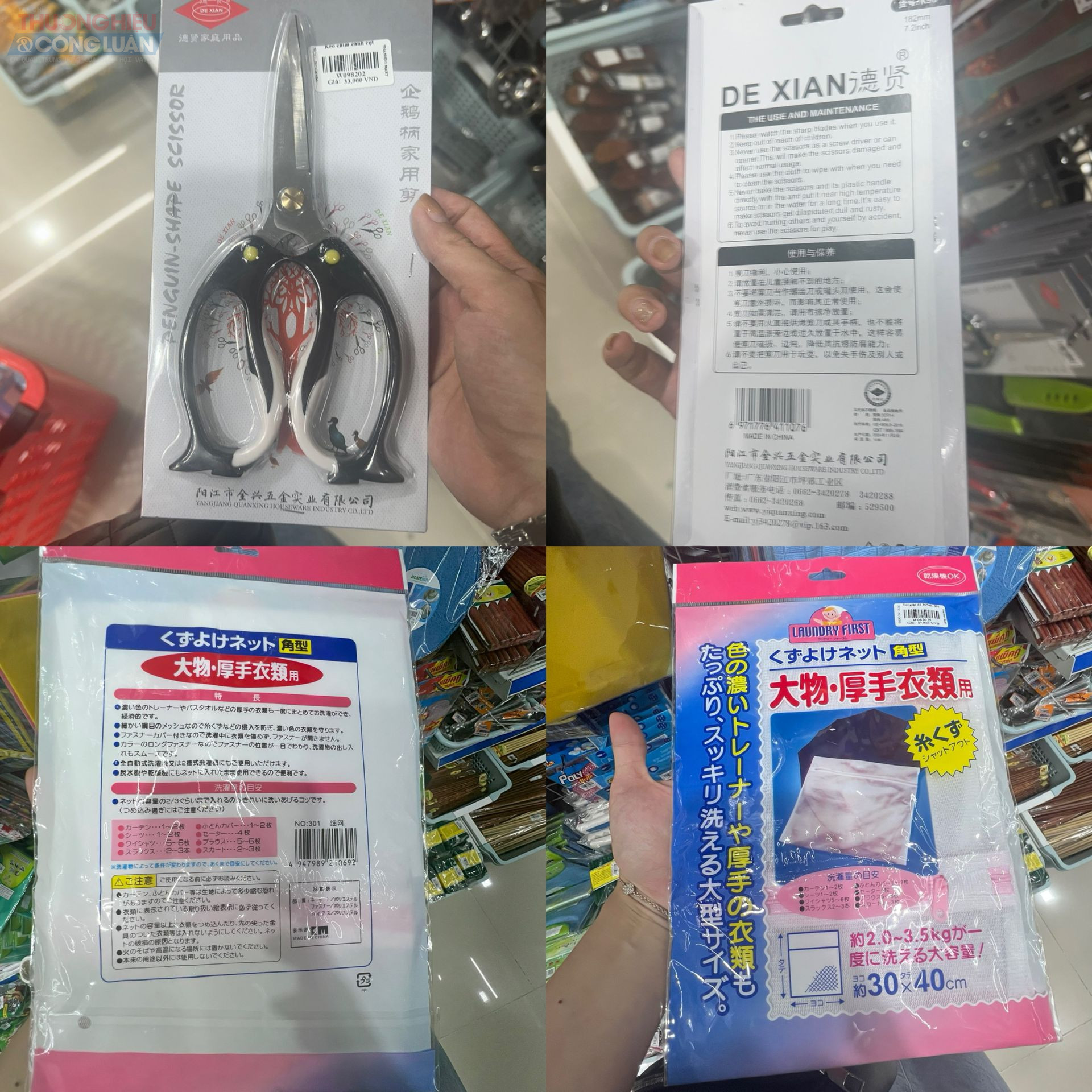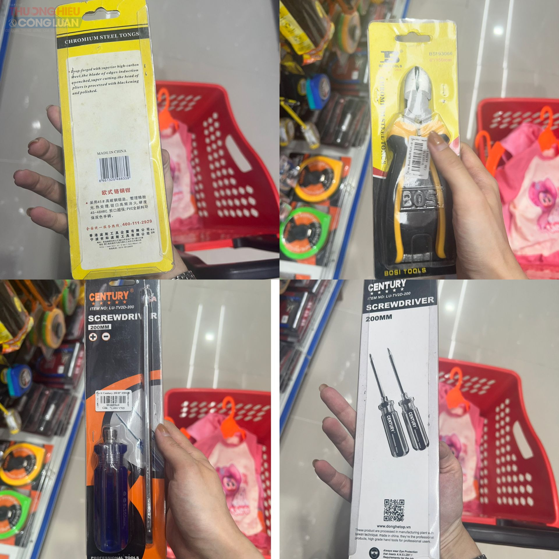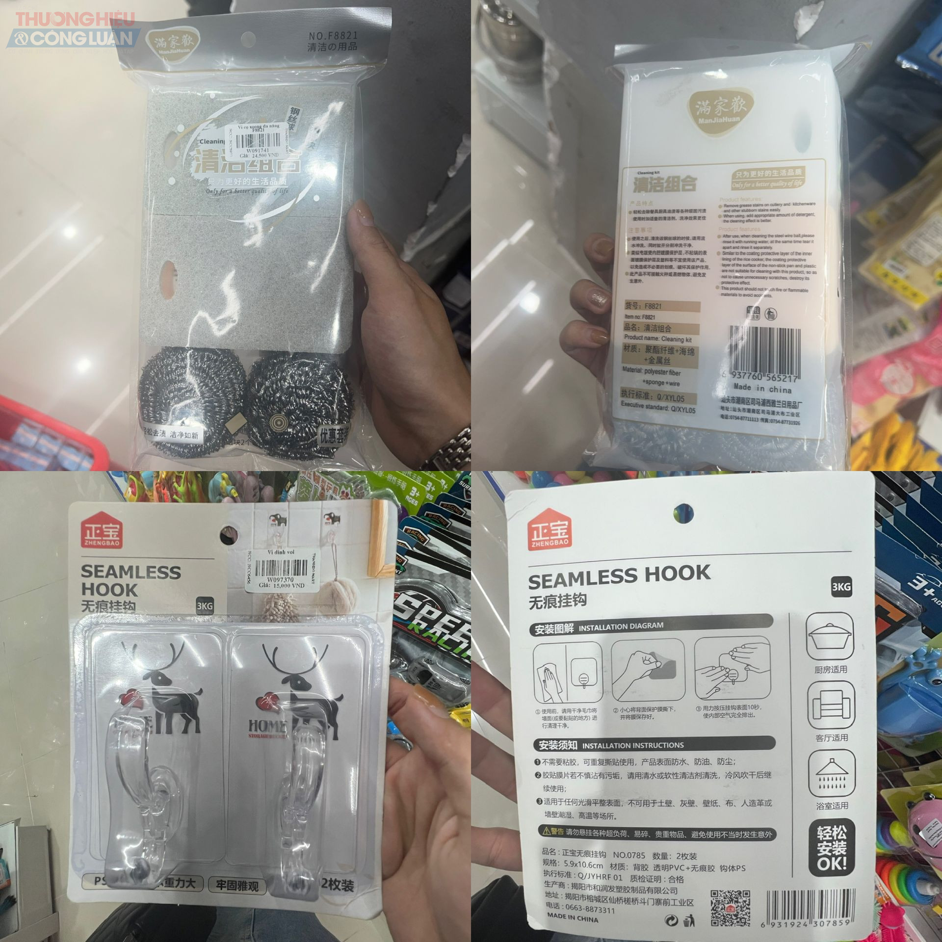 Tại khu vực bày bán đồ gia dụng, phần lớn các đồ gia dụng như bình nước, chổi quét, nồi, chảo, bát đĩa… đã được dán tem nhãn phụ Tiếng Việt đối với hàng hóa nhập khẩu. Tuy nhiên bên cạnh đó, cũng ghi nhận nhiều sản phẩm bao bì toàn chữ nước ngoài như Trung Quốc, Hàn Quốc… mà không có tem nhãn phụ Tiếng Việt, gây khó khăn cho người tiêu dùng trong việc tìm hiểu thông tin, mặt khác vi phạm quy định về tem nhãn hàng hóa.